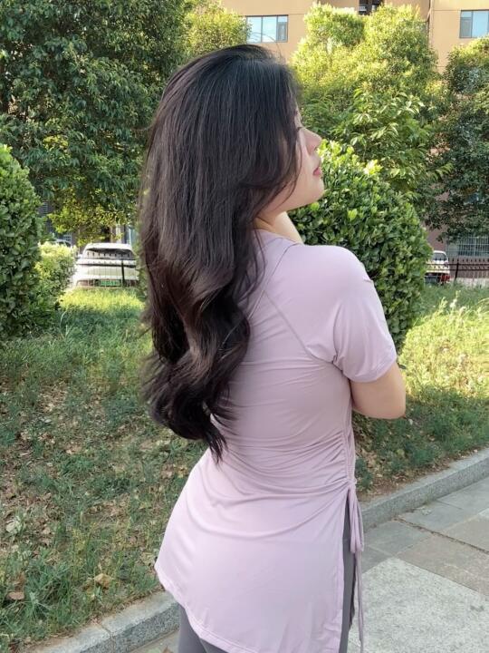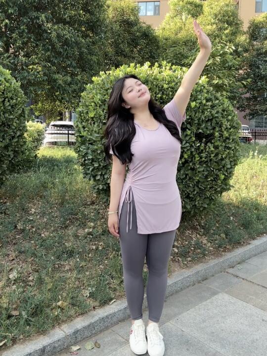 上身冰冰凉凉,运动时特别吸汗,长度刚好能盖住三角区和屁股,下面穿个紧身裤短裤都没问题,又可以当运动衣穿,也能当日常小T恤去穿,而且两边的开叉特别显曲线,另外一边抽绳还能自己调节褶皱。去年入了一款蓝色,今年又入了款紫色,搭配碳灰色瑜伽裤超有氛围!