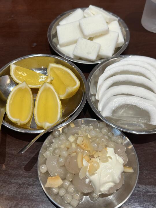 柠檬冻是最好吃的!酸甜口的 椰子冻是椰果肉连着椰子冻 酸奶椰子冰感觉就是炒酸奶 椰子味比较轻 龙眼冰甜甜的 不是很凉 总之可以在夏天尝试一下🥥🍋🟩