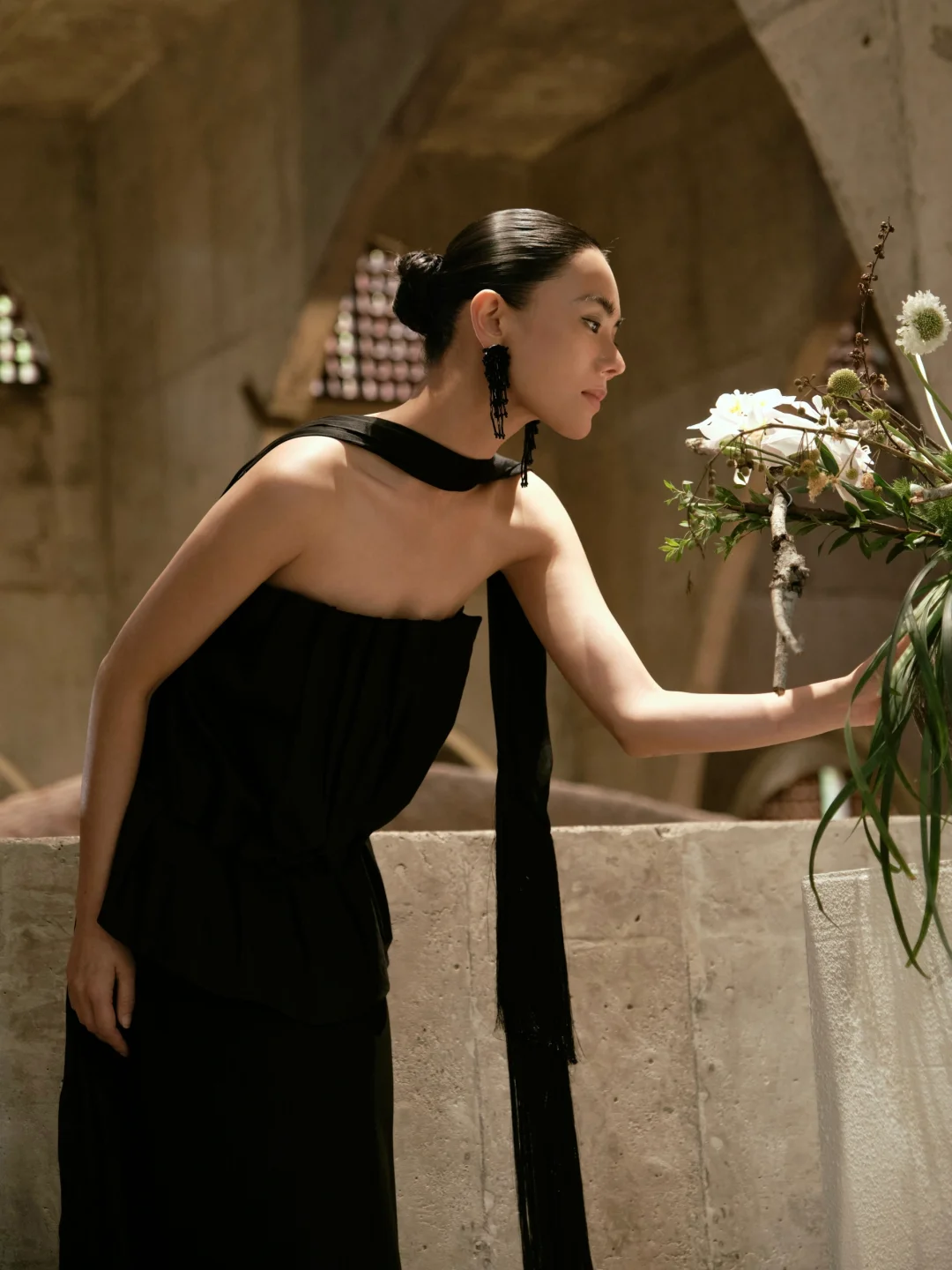 裸色斜肩裙,真的是清爽又不费力的好看。突然很想试试不靠多余装饰、只靠剪裁说