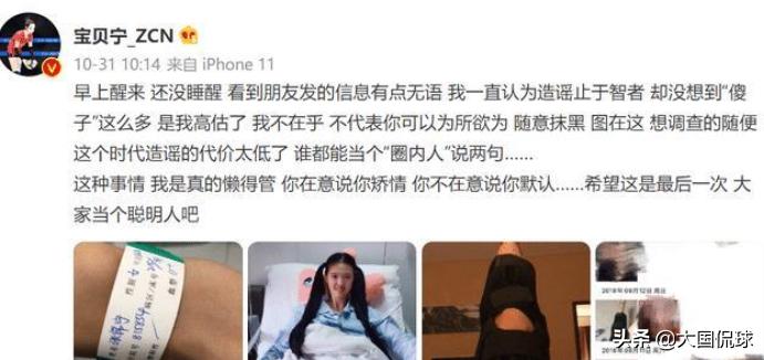 张常宁忍无可忍!辟谣曾因为流产退赛,亮出关键证据:大家当个聪明人 近日有不少的球迷在网络和朋友圈中,转发一则“张常宁被曝3年前因流产退赛”的信息,这则信息一大早甚至转发到了张常宁的朋友圈,张常宁本人也懵了,一直认为谣言止于智者,但没想到“傻子”是真多,是我个人高估了,我不在乎,但不代表造谣者可以为所欲为,随便对女排选手抹黑,有图有证据在着,这个时代造谣者的代价太低了,谁都想当个“圈内人”说两句…… 张常宁还表示:原本这种造谣的事情,我是懒得管。你如果在意了,就有人说你矫情,你如果不在意了,有人就会说你是默认了事情。我也希望这是最后的一次造谣出现了,大家都当个聪明人吧。 张常宁发声的文字下面还配了多张图片。其中一张是躺在病床上的照片,对应的是网友在近日直播中爆料,“张常宁在2018年的亚运会没有参赛,不是因为得了肾积水,而是怀孕流产”。造谣的人还表示,张常宁非常会营销自己。 如今,这条热搜上了榜首位置。造谣者将这件事情重新提起,也引起了很多网友的关心和热议。在事情闹得沸沸扬扬情况之下,张常宁站出来辟谣晒出了关键证据指责造谣者。张常宁的证据中显示,2018年住院的图片,还有病号的手环,上面也清晰地登记了住院后病区,病号。当时,负责照护张常宁的主治医生和护士的名字都有。他们都是泌尿外科的专家,图片也能证明,张常宁在2018年的4月份,确实是做了肾积水的手术而无法参加比赛,根本不是所谓的流产。 张常宁还晒出了一张自己左膝前十字韧带撕裂的照片,只能躺在病床上静养休息,不能走路,图片证据一亮出,网友们统一站在张常宁的表态上,要求对造谣者进行严惩。我也希望在未来,不要有那么多的人去相信造谣的人,大家都要当一个聪明的人。