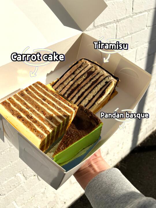 这家风很大、获得很多奖的蛋糕店真的特别难来[笑哭R] 一周只开三天 周五六日 10am-4pm 每次来很多都sold out,至今,我想试的red velvet还没看过本尊[哭惹R] 想试比较热门的口味估计得早点到 我去了三次大概都是两点左右到的 他家的蛋糕一片14-18🔪 有些口味偏甜 但个人最爱的斑斓芝士蛋糕和honey misu非常适合亚洲人的甜度[赞R] 最重要的是他家的服务态度没得挑 虽然店面很小 只有户外坐位 但爱吃甜的朋友们可以冲