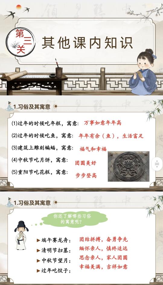 小升初好物 课件ppt 文化常识 语文 六下语文 小学语文 小升初语文复习专题 原创 小升初复习 小升初语文 小升初 小升初语文复习 小升初语文日积月累 语文小升初 小升初复习资料 小升初课件 积累与运用 语文预习 【小升初语文复习课件】系列7来了,整整做了2天,课件共107页,内容比较全面(如有疏漏,请谅解)无教案哦,有配套练习6页。
