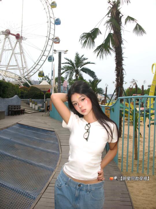 喜欢在夏天吹着晚风 来一场快乐的散步 微风带来绿色的清爽感 真的太舒适啦 今日份夏日ootd来自明星同款! 简单的穿搭都超有生命力 上衣是简单的白T 搭配牛仔裤 来点蓝色点缀一下 不仅防晒还时尚满满~ 上🍑🔍「明星同款穿搭」, 可以get我的同款哦~ 一起记录美美哒夏天吧
