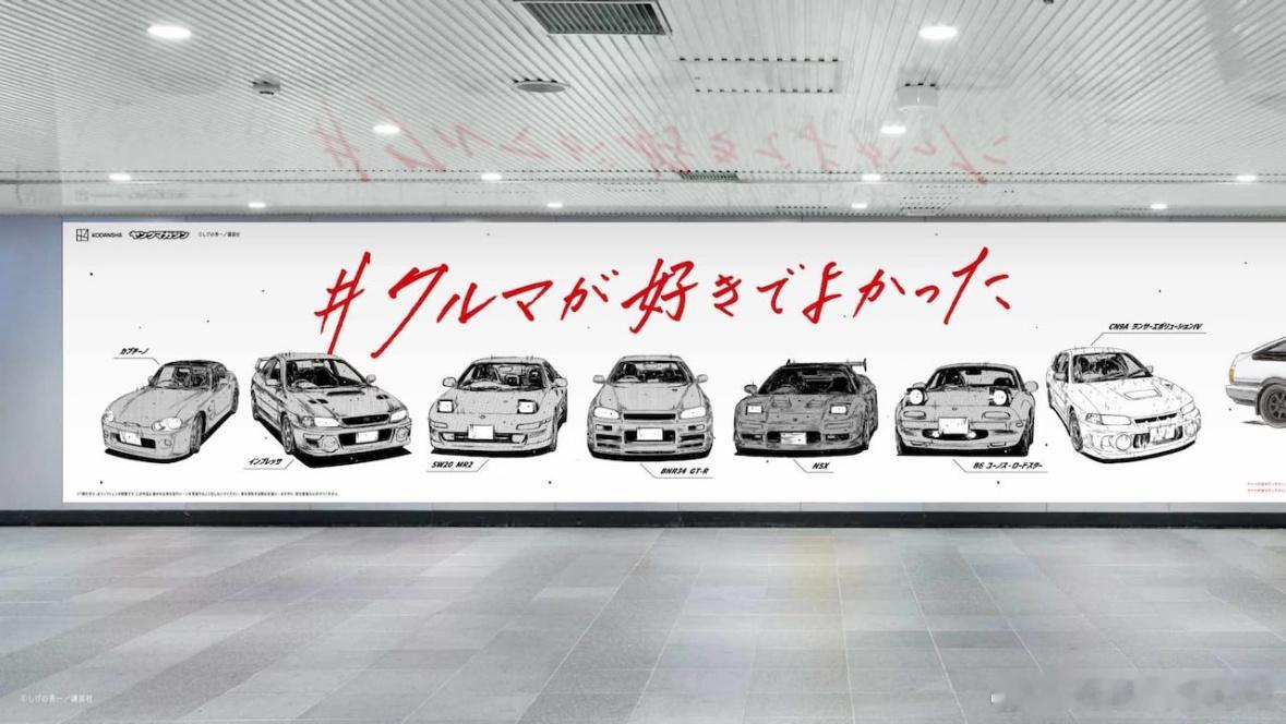 感动!东京东急田园都市线涩谷站展出的22米长头文字d 30周年广告! 燃油车汽车文化情怀广告