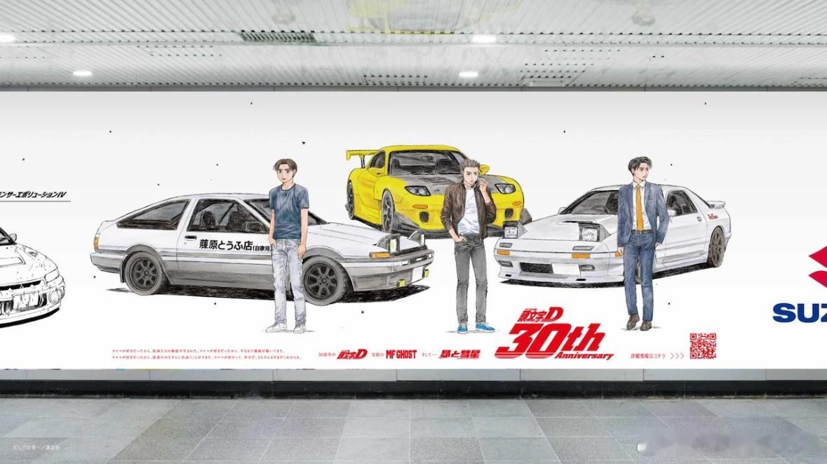 感动!东京东急田园都市线涩谷站展出的22米长头文字d30周年广告!燃油车汽车