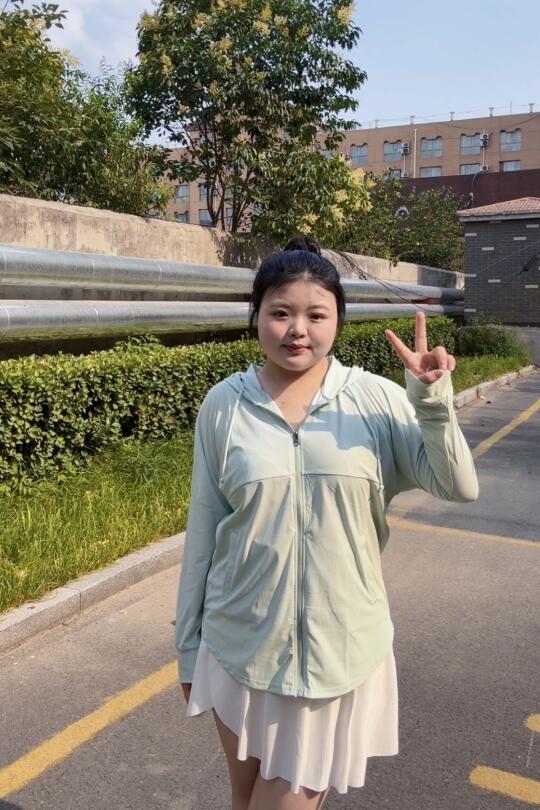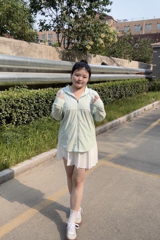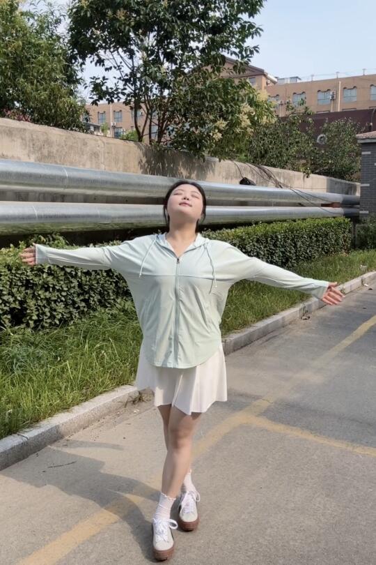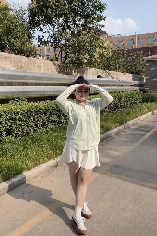 新买到的防晒衣搭配网球裙好清新!衣服面料软乎乎的穿在自带凉感。对我们胖宝宝很友好!颜色做了新款的嫩芽绿,搭配白色的网球裙不要太夏天~MAxrunpro大码健身服健身女孩大码穿搭每日穿搭运动运动穿搭瑜伽服大码运动穿搭大码瑜伽服微胖女孩健身服