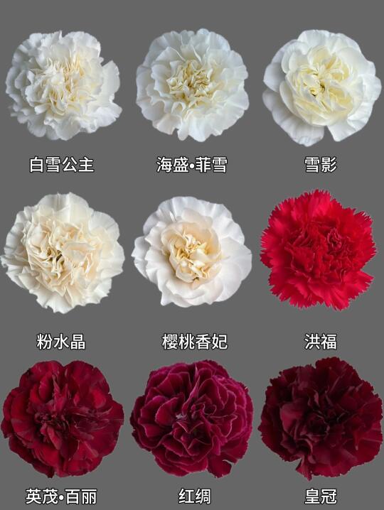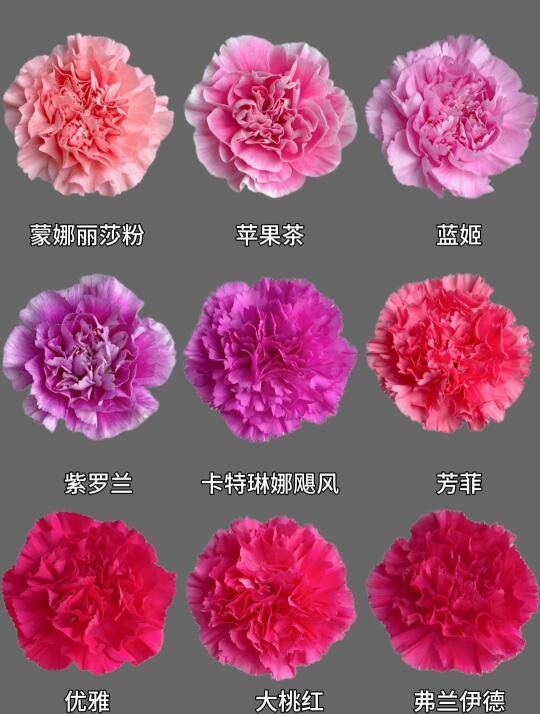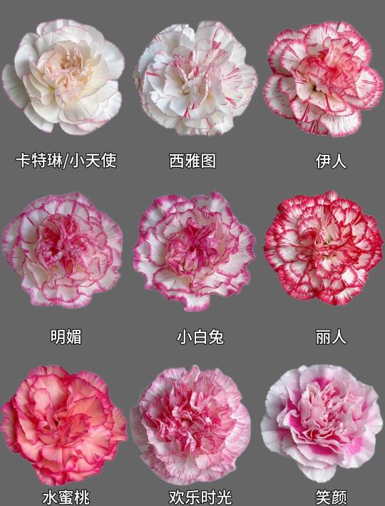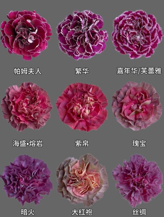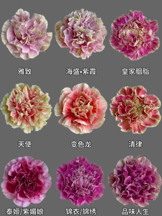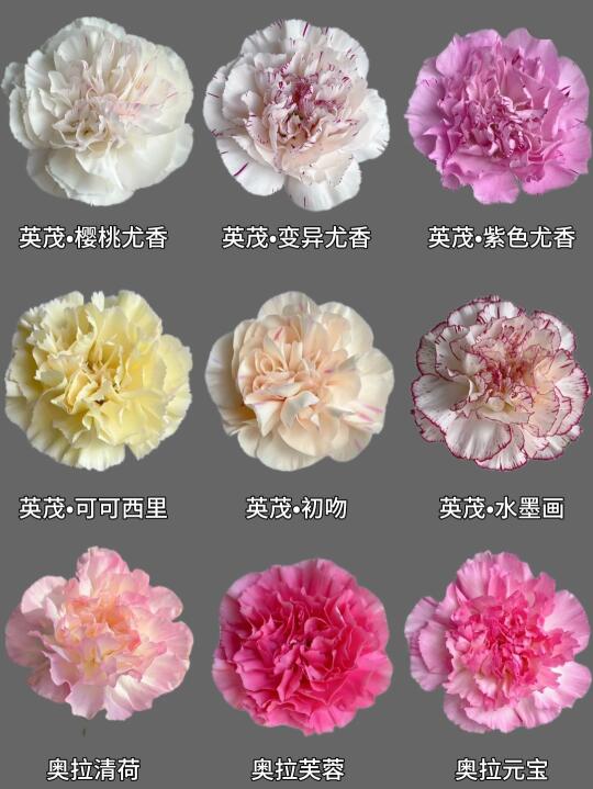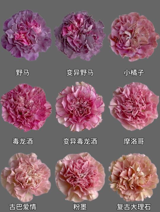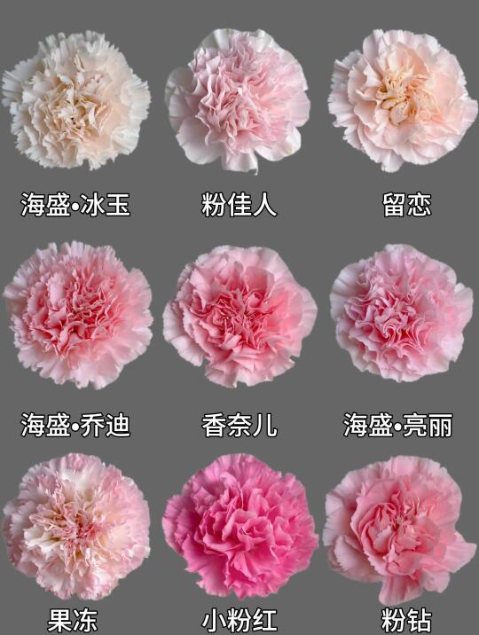 原来康乃馨的品种这么多呀! 小官我啊整理得眼睛都花了😭