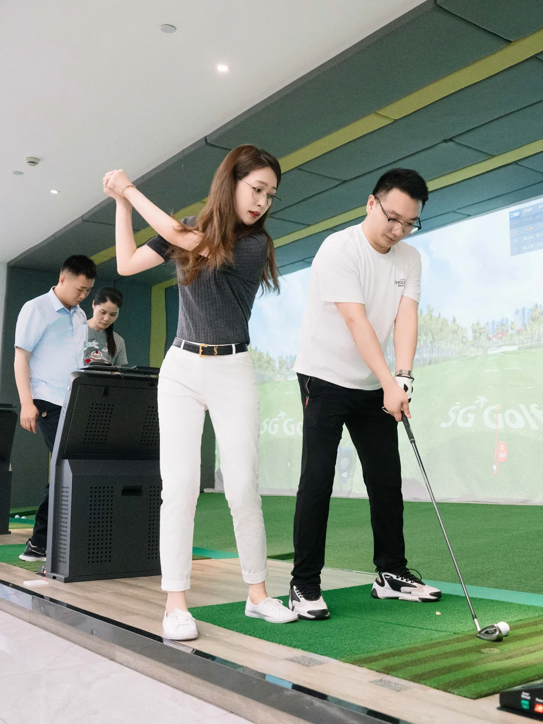 [星R]【挥杆之间,尽显格局】在室内高尔夫模拟器前,父亲们优雅挥杆,享受运动的乐趣与策略的博弈。