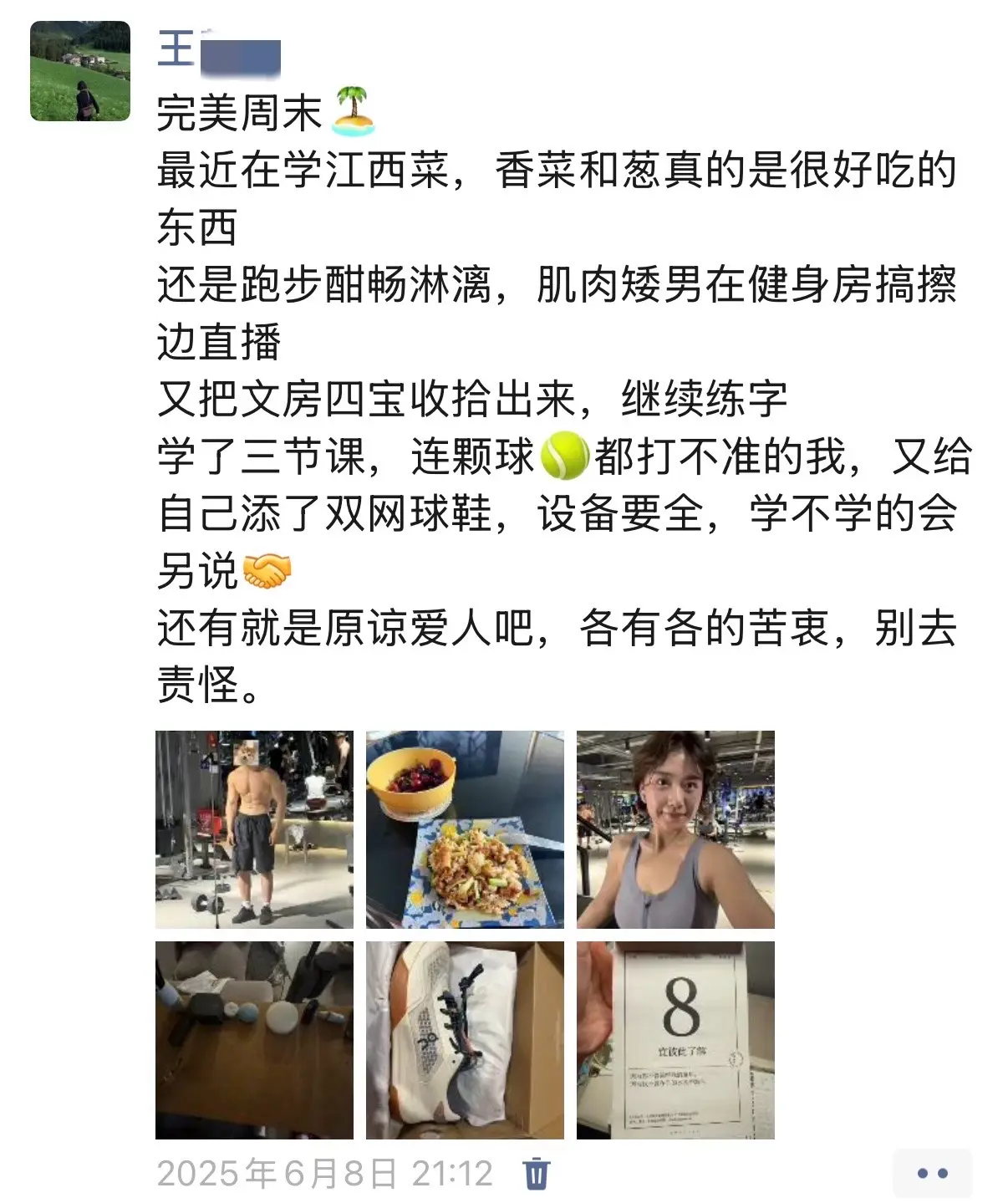 我不爱热闹,我最喜欢的生活在周末,我会起个大早去跑步,上午去学习自己喜欢的运动,回家做饭,打开空调拉上窗帘看自己喜欢的书或者电影,美美的睡个午觉,学点不爱学的考试内容,做家务,直播,不需要任何别的角色出现,就这样属于自己的一天,让我最安定最舒服的一天。等到周一,我又要去面对那纷纷扰扰,热热闹闹,混乱疲惫的过完一周,再去周末寻找安宁。😮💨射手座