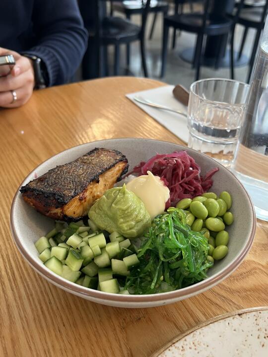 氛围感十足 🌟🌟🌟 服务没咋滴 (人不多 但服务员都是一副无所谓的样子 而且出菜巨慢) 咖啡好喝 👍🏻 食物方面 Salmon poke bowl踩雷 roasted chicken好吃 [吧唧R] 这种cafe去了一次不会再回顾了 在附近的朋友们更推荐去Abacus 📍Rustica Sourgh