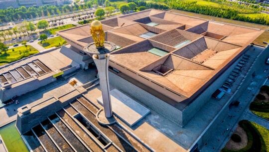 馆前的观光塔,仿照武周时的天枢而建。寓意天下中枢,是世界中心的象征。