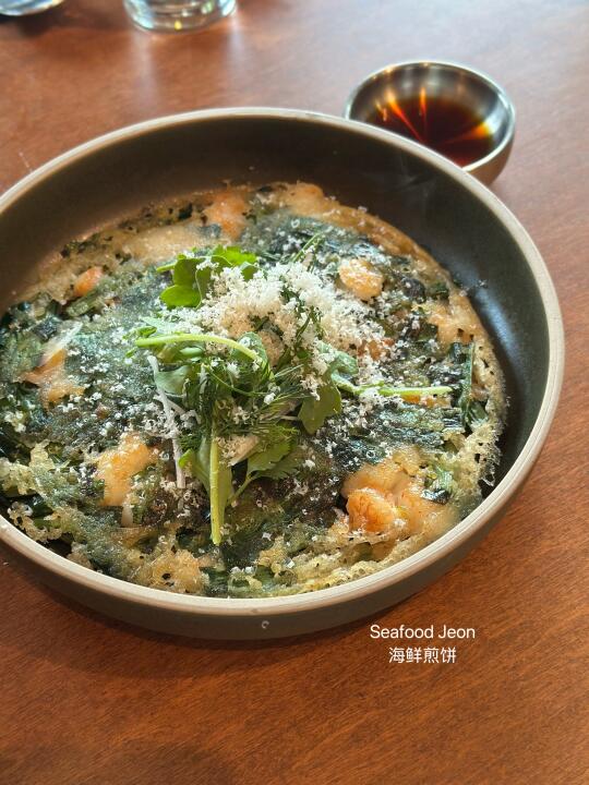 ▫️海鲜煎饼(Seafood Jeon): 超级好吃,饼底被煎出一层薄薄的壳,脆脆油油的海鲜风味一口下去好满足