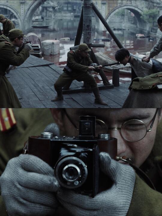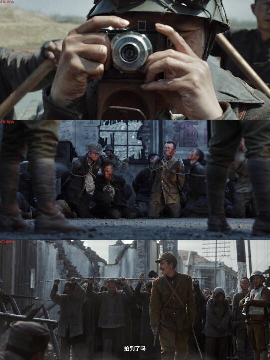 还有那个“子弹快门”的设计,导演特意把日军更换相机胶卷和子弹上膛的镜头混剪在一起。这就像是在说,他们按下快门和扣动扳机一样,都是对我们同胞的残忍伤害,是对受害者的“二次屠杀”。他们把屠杀当作荣耀去拍照记录,简直丧心病狂😡