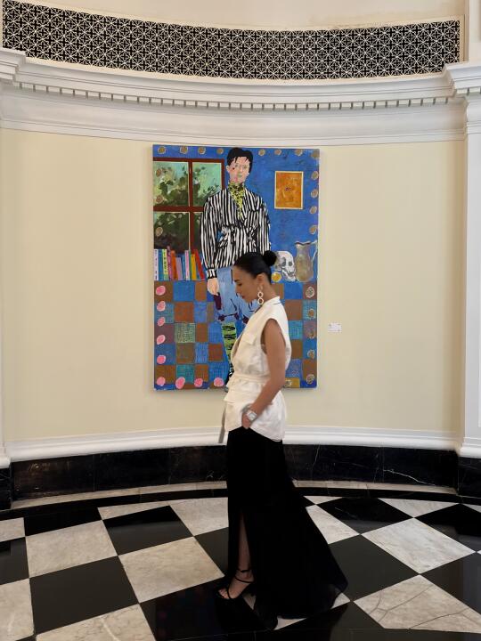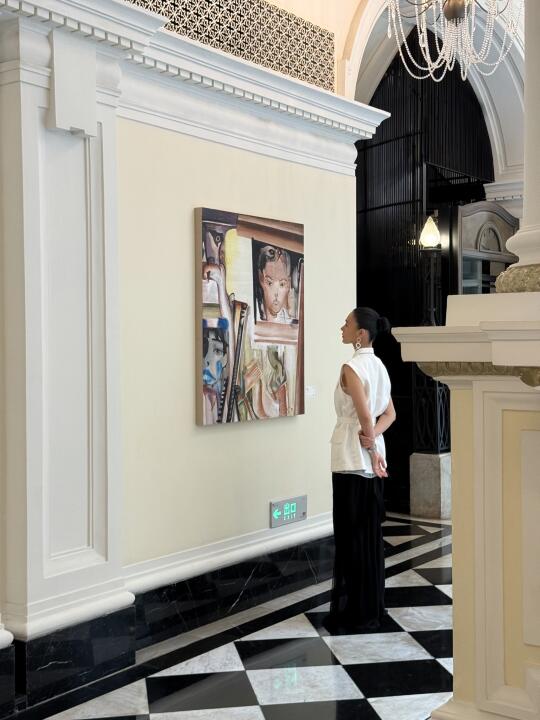 早上七点起来化妆拍摄完珠宝💎品牌,没有直接回酒店,还穿着高跟鞋👠,鬼使神差地走进了一个画展,暖黄的灯光打在画布上,空气里弥漫着淡淡的油彩和木框的味道。 站在一幅巨大的、充满生命力的抽象画前,那些焦虑和疲惫,神奇地被色彩“吸”走了。 看展对我而言,不是附庸风雅,而是 实实在在的“自我救赎”,艺术有种魔力,能让你跳出日常,看到更广阔的世界和可能性。治愈“瞬间”有时只需要一幅画,和一个主动走向美好的自己。