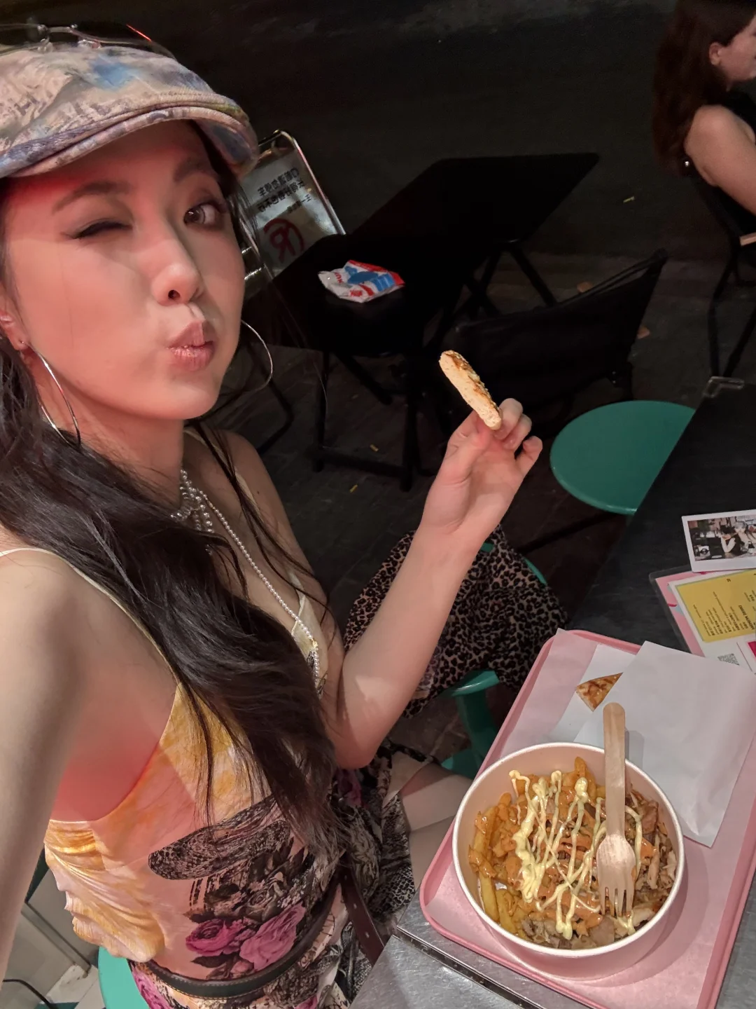 路边吃吃 好喜欢这个烟熏妆! 随便混搭莫名很出片!!