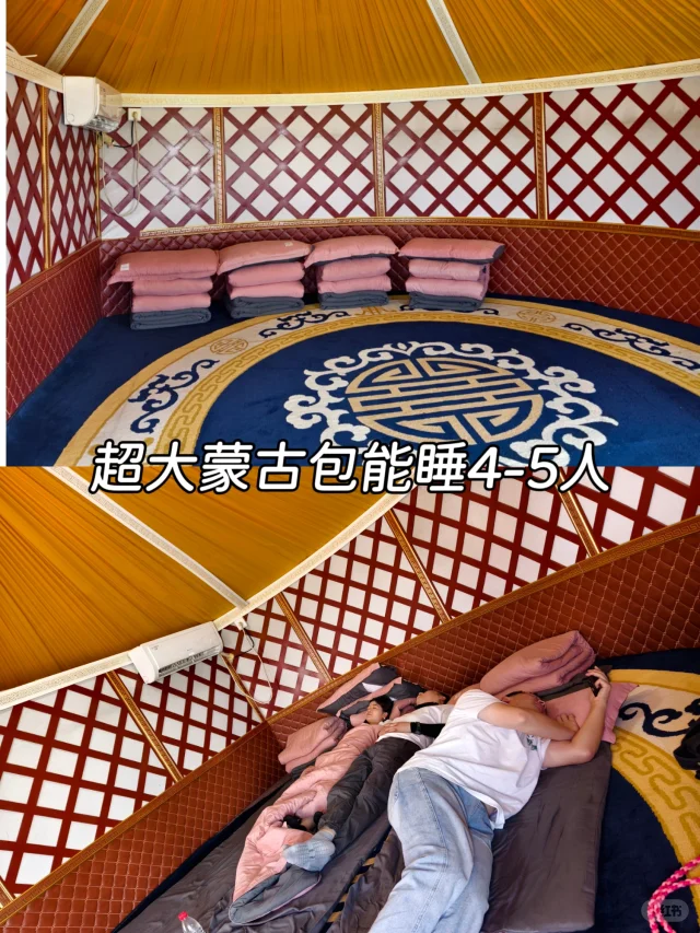 选带空调+卫浴的豪华包!约💰500-600r/晚。传统蒙古包条件艰苦,带娃慎选!