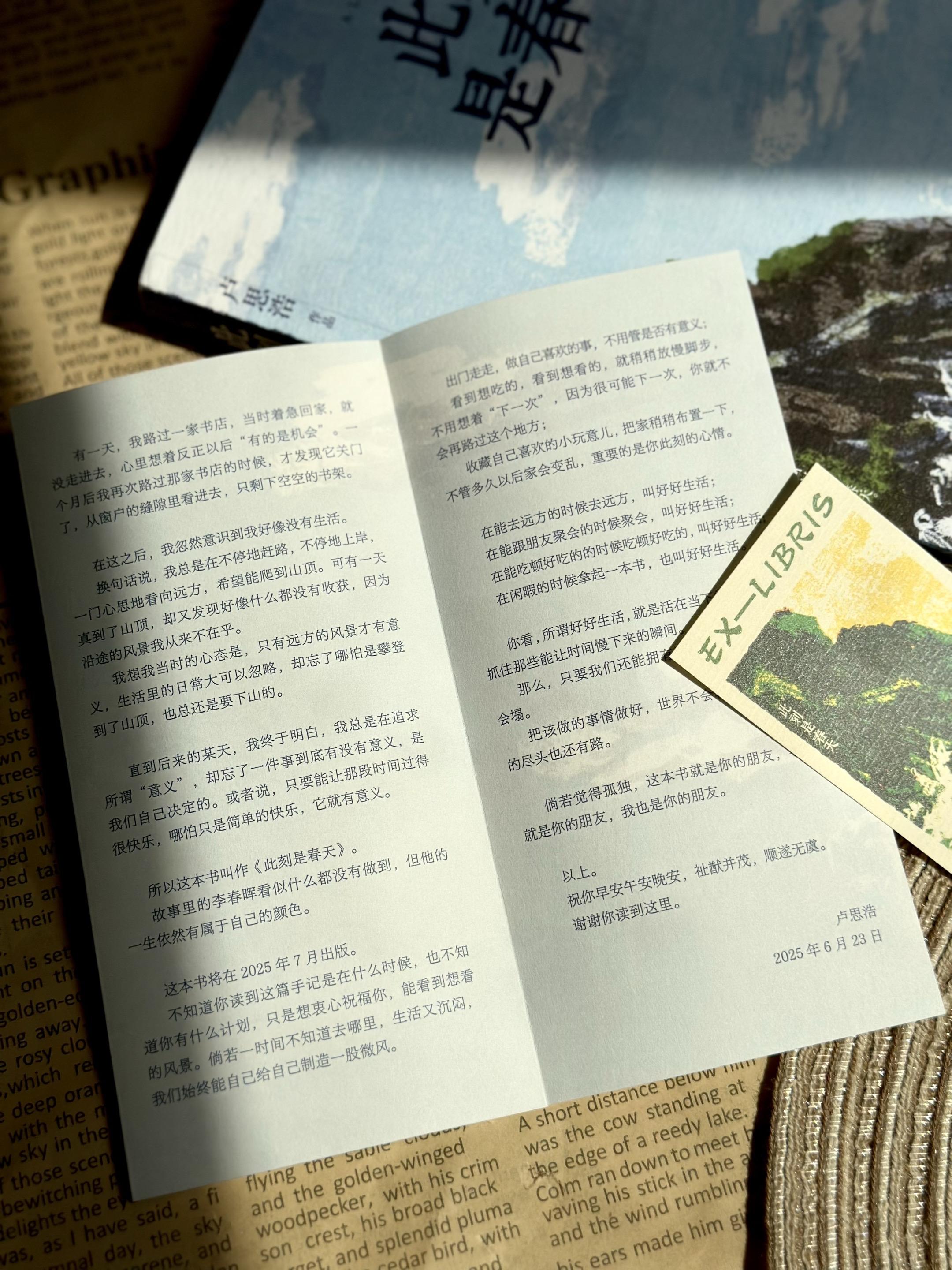 2025真的被卢思浩新书狠狠治愈到了!沉淀四年,终于等到卢思浩全新小说集首发! 太太太治愈了!在书中看到了自己,真的共鸣到哭😭 📖:《此刻是春天》 ✍🏻:卢思浩 书中共鸣特别深的句子: “决定走过的旅途是否有意义的人,是我们自己。” “爱这件事,只需要白描,不需要修饰,因为爱本身就是一个人和另一个人,彼此相见的瞬间。” “所谓好好生活,就是活在当下的这个瞬间,抓住那些能让时间慢下来的瞬间。那么只要我们还能拥有这样的瞬间,天就不会塌。把该做的事情做好,世界不会轻易毁灭的,路的尽头也还有路。”