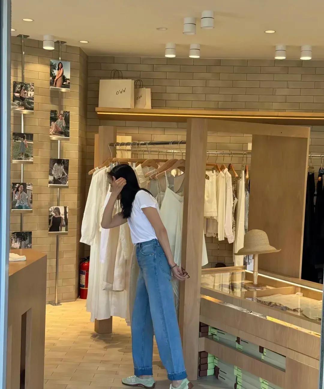 董洁以带货主播身份起家,如今华丽转身,创办了自己的服装店,正式晋升为时尚老板娘。