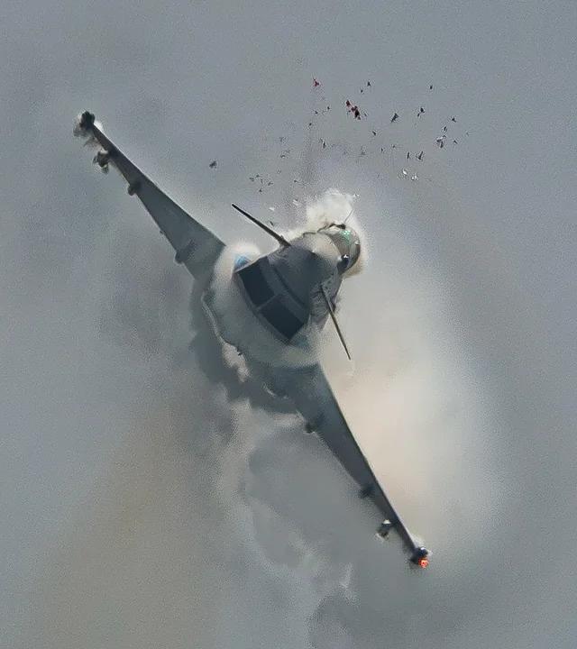 感觉问题不大! 鸟类与空中表演的台风战斗机相撞,事件发生在“Aire25”航展。