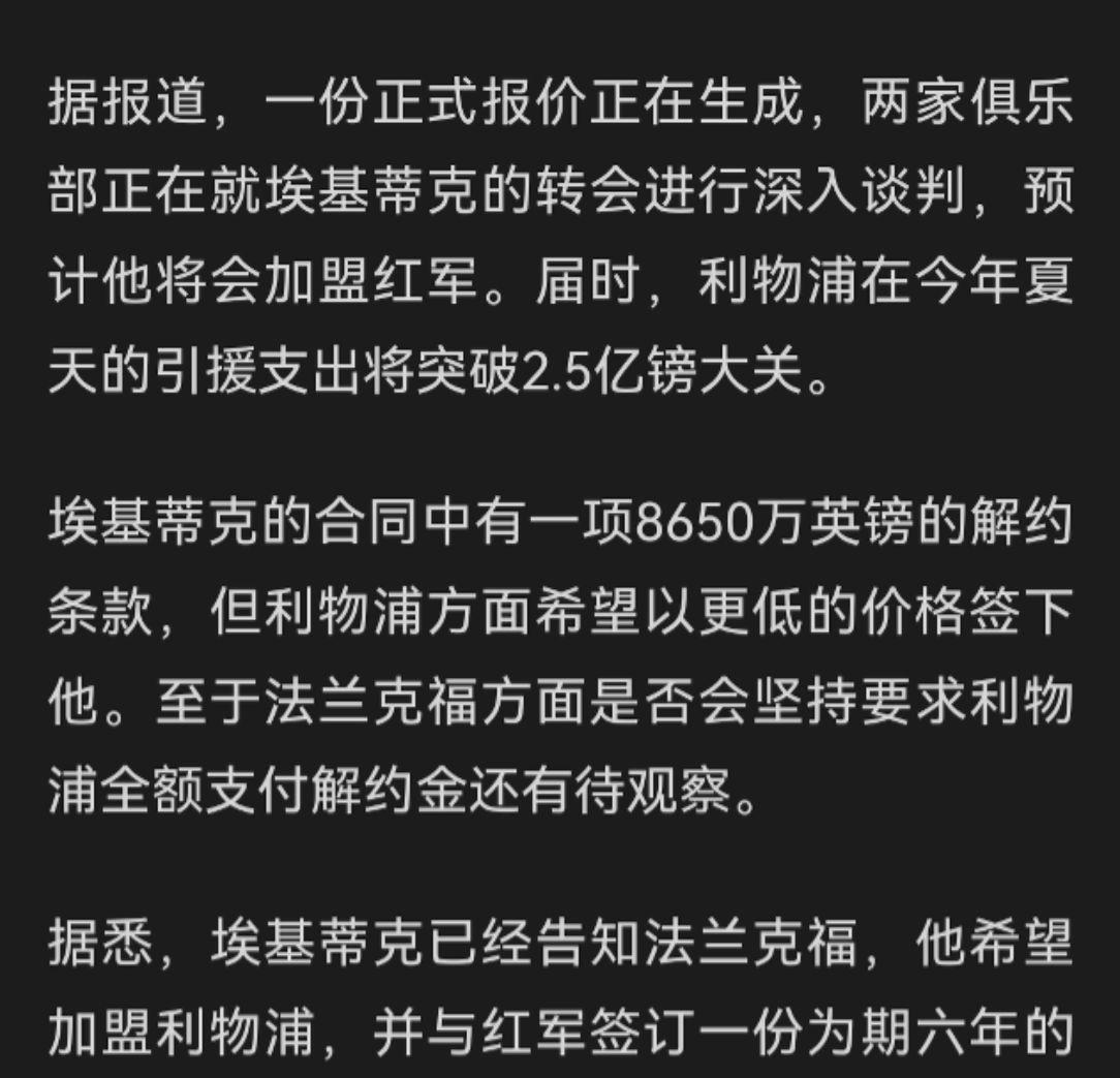 这样的话,利物浦夏窗总引援将达到2.5亿英镑#利物浦 #法兰克福 #埃基蒂克 #足球的魅力