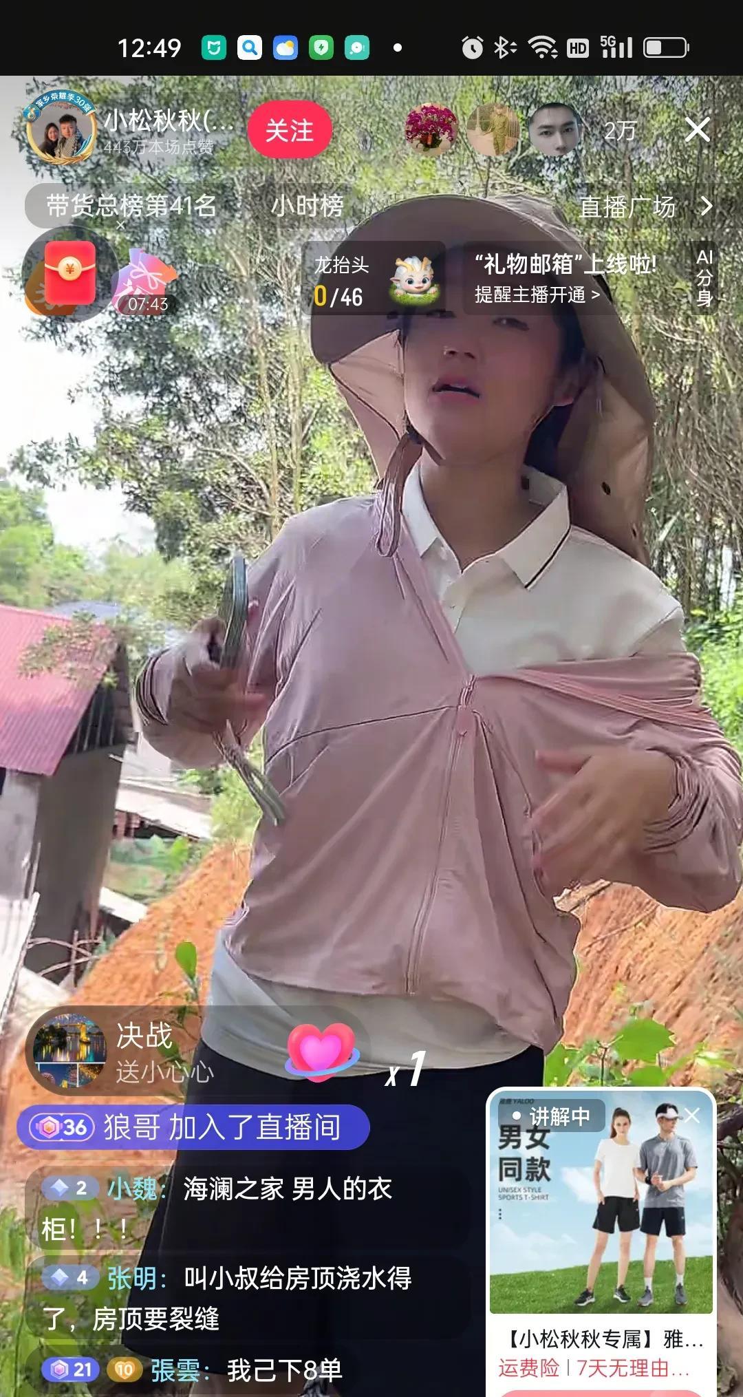 小松直播带货,今天玩了一个全新赛道。 小松在昨天的直播间说:哥哥姐姐们,我不是那种见钱眼开的人。 今天上午,小松没有直播带货,也没出现在直播间,直到中午一点左右才出现。真的是男子汉大丈夫,说话算话,一言九鼎。 纵观小松账号今天直播带货,有以下几个特点: 一是小松这次来了彻底个消失。直播间没有小松和小松旁白,主要以秋秋和品牌方为主。来回切换小叔房子和封顶的镜头,做到带货与直播封顶两不误。 二是一改昨天在老丈人别墅大门口直播带货为主场,到小叔房子后山坡直播带货。讲解产品的时候,一只鞋子完全能够遮挡镜头,小叔的房子尽在鞋下。 三是直播时间长,直到下午一点过,还在山上直播。小松和品牌方是逮着这次直播间人流不散的机会,往死里薅羊毛。 小松这次带货与其他直播间带货,还是有一个共同点,就拿原价179元,直播间129元一双的运动鞋来说,小松拿下了全网最低价格,因为品牌方米总,一双鞋子自己贴了50元[捂脸]考虑到买得多,米总亏得多,我真的于心不忍,狠了狠心,一单没下,让米总尽量少亏。 小松直播间的哥哥姐姐们,我这样做,没毛病吧!欢迎评论区留言。