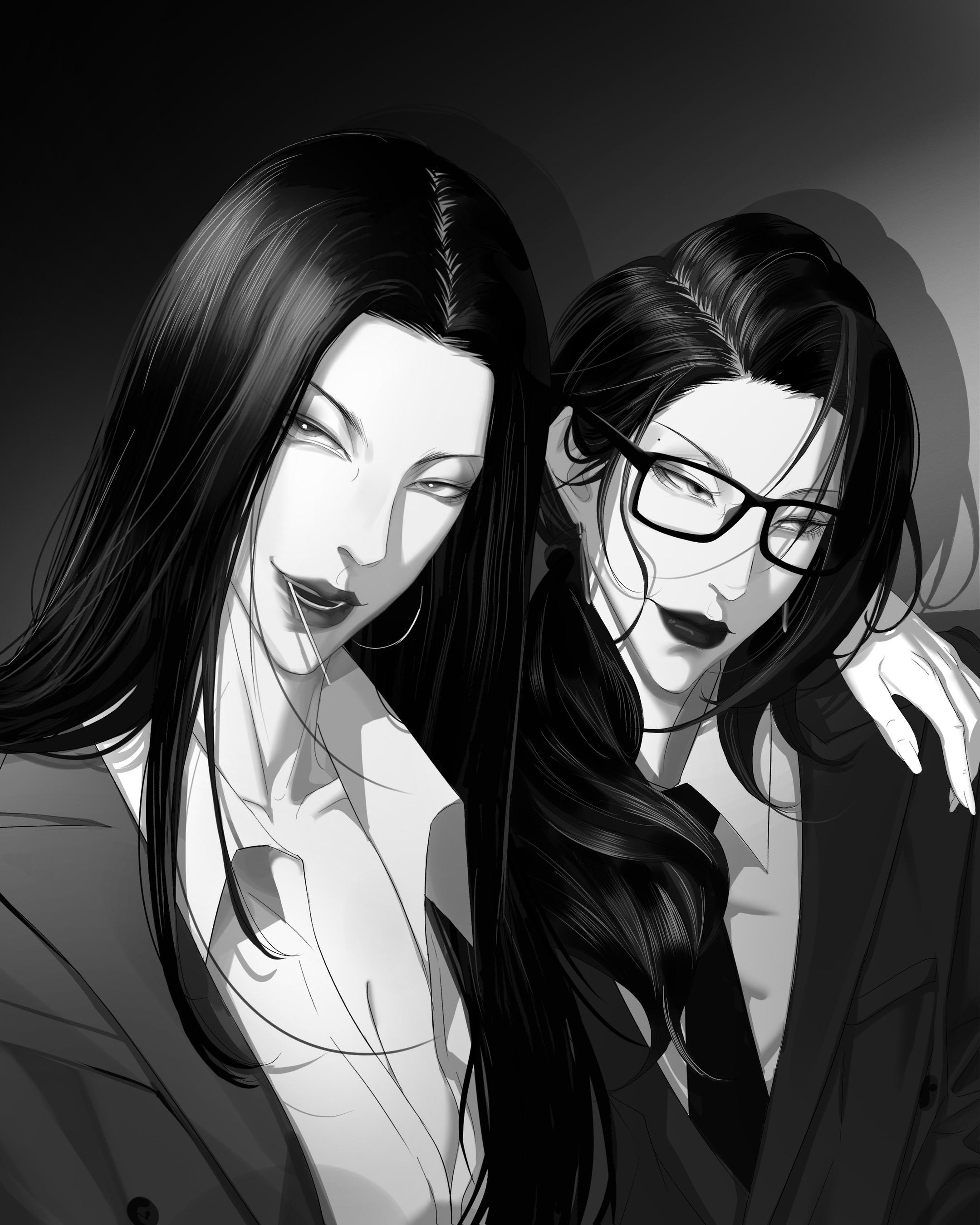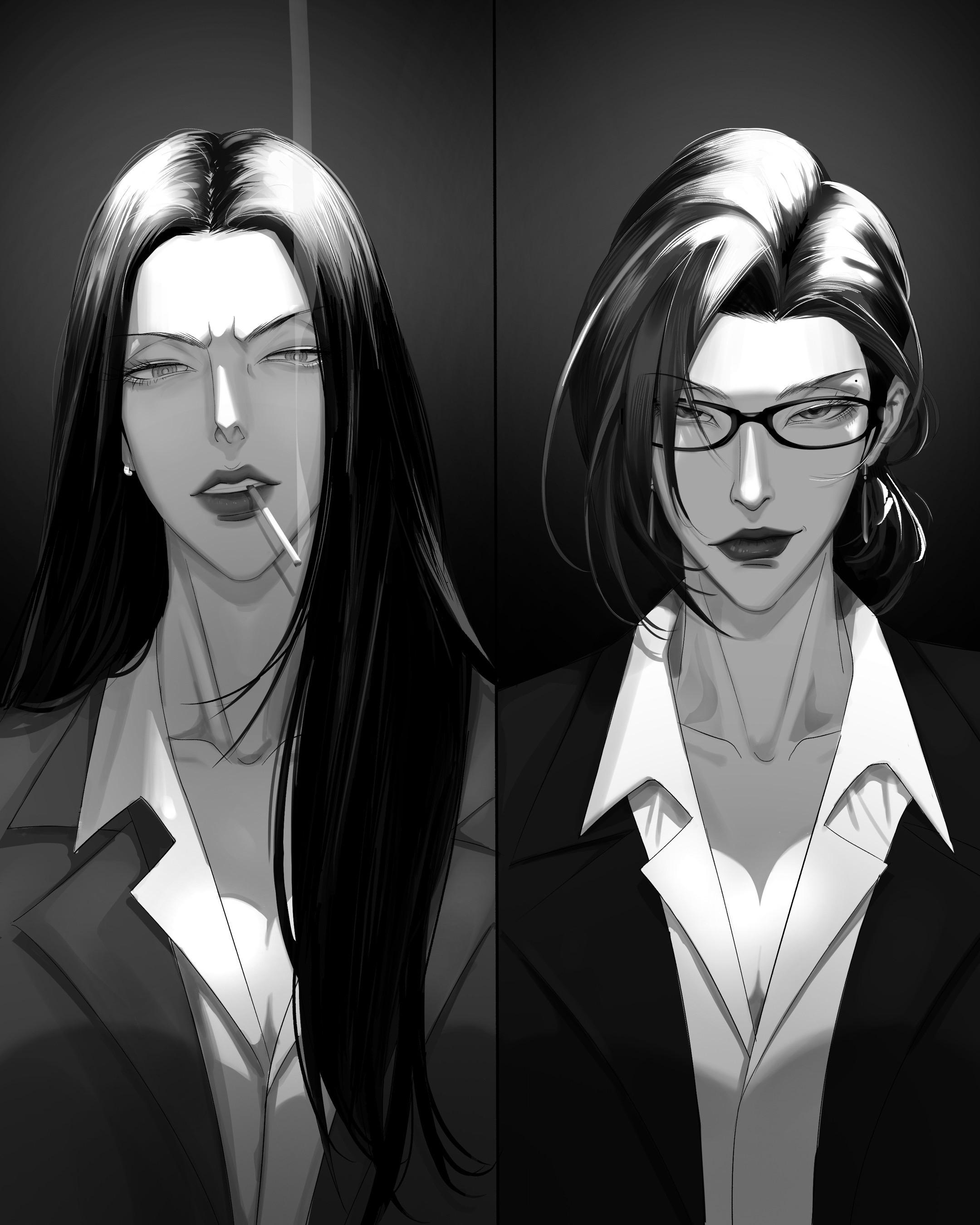 从赤井兰取掉了油腻感,江墨厌从齐刘海变成中分,五官细节也在不断优化。我再次体会到画画变得像写作,看画变得像阅读。