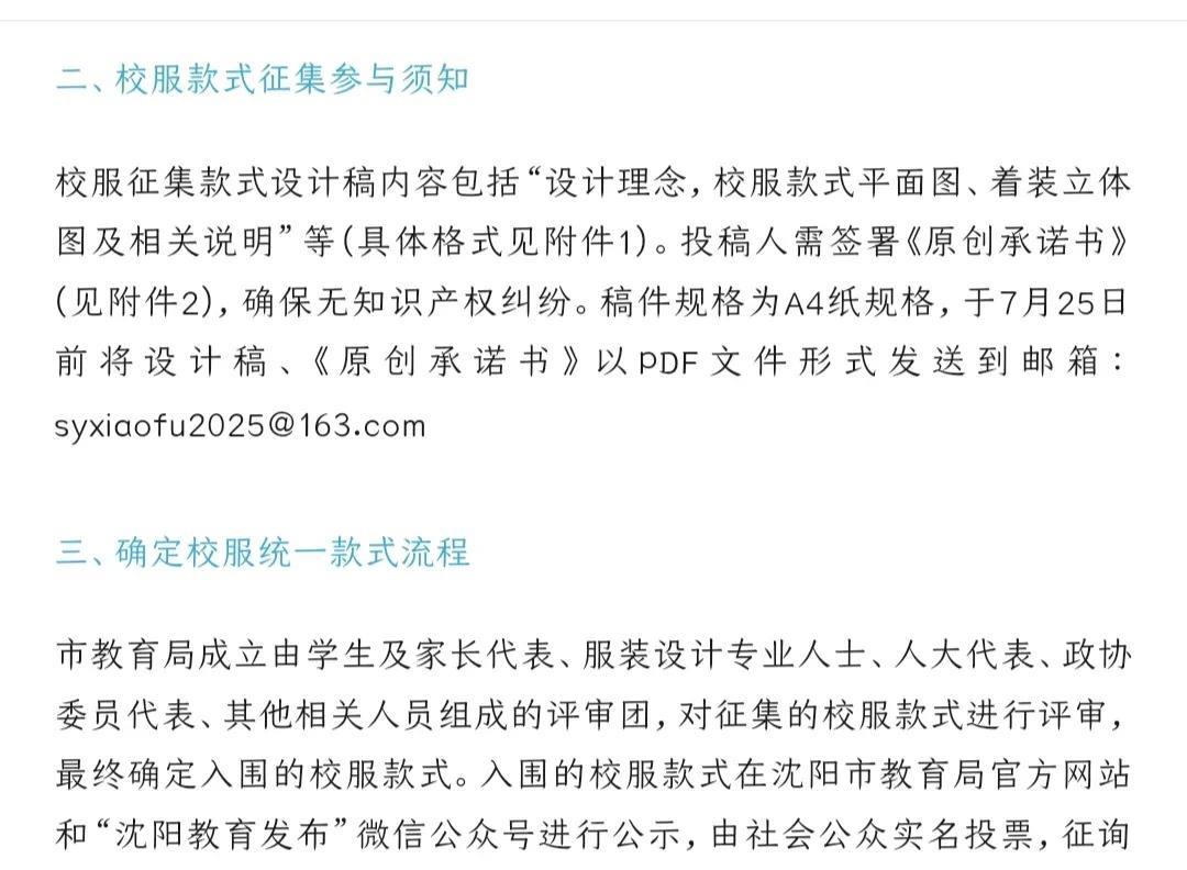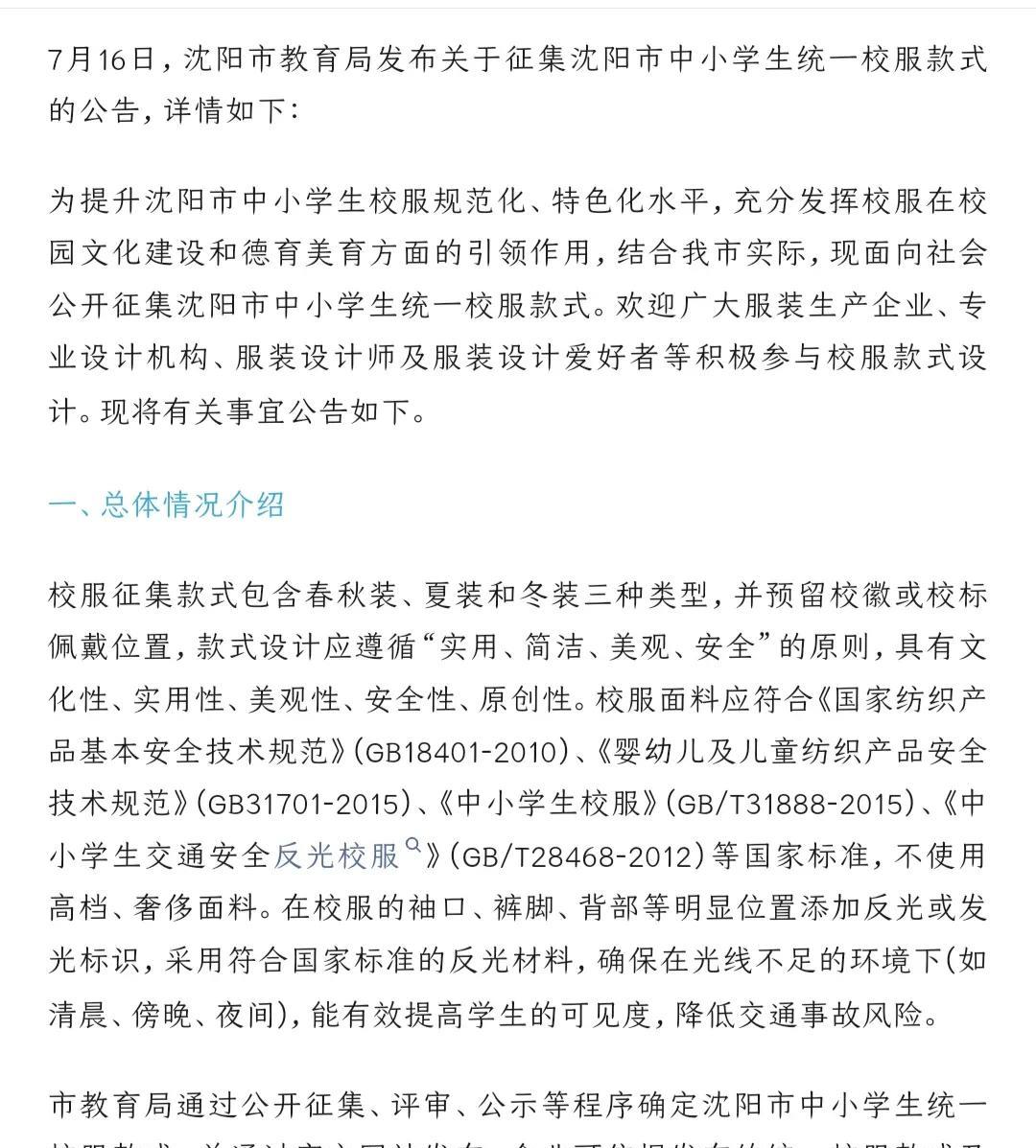 好消息!沈阳的中小学生要有统一的校服啦!点赞! 沈阳市教育局征集校服款式,这一举