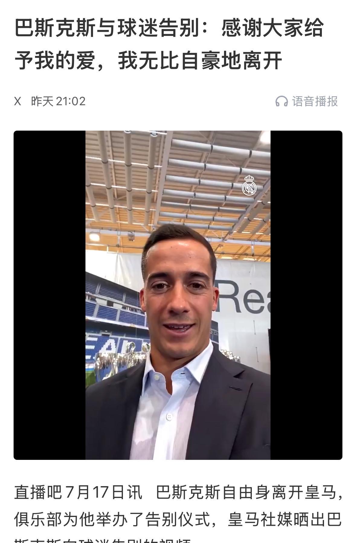 北京时间2025年7月18日,皇马球星巴斯克斯完成了对球迷的告别, 巴斯克斯表示