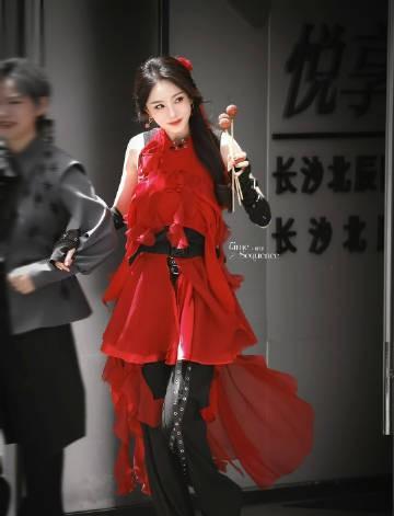 杨幂密室大逃脱红裙路透,明艳大气的大美幂,好漂亮啊