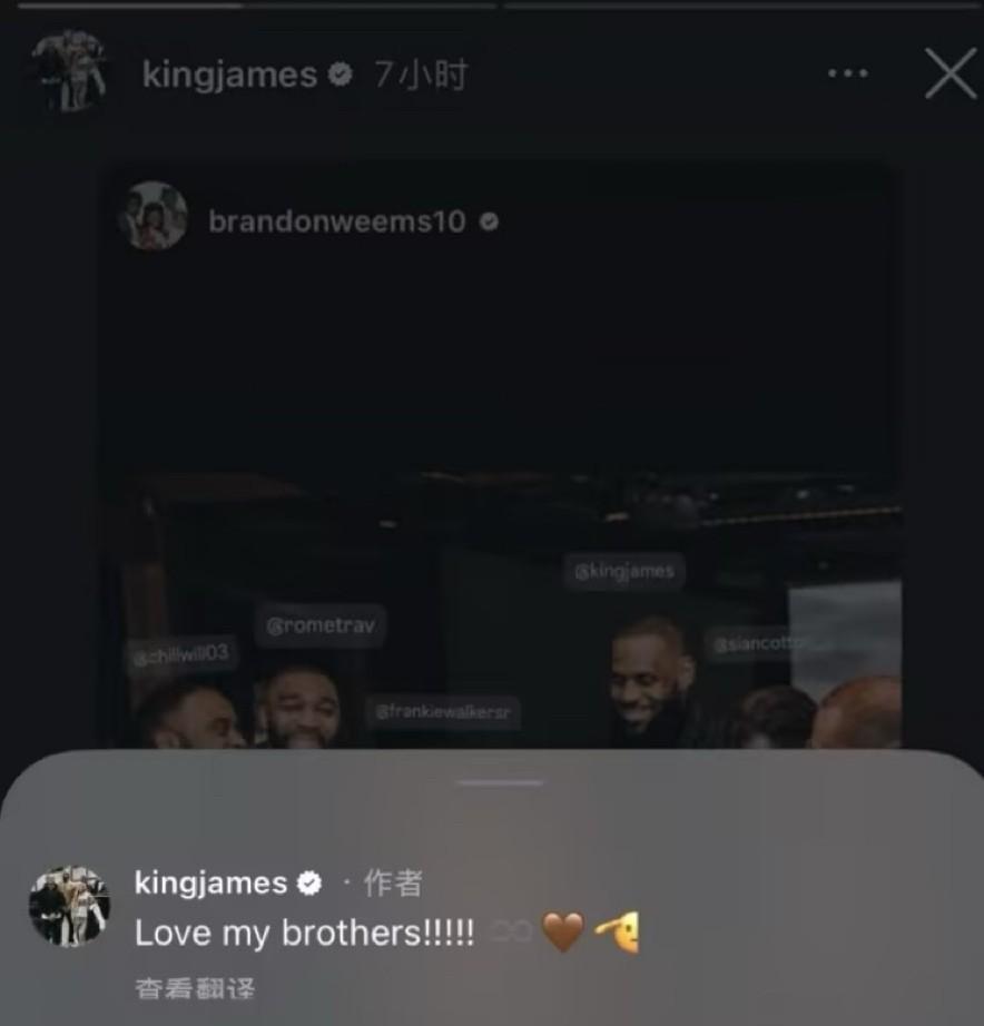 詹姆斯回归骑士心情十分迫切,再打感情牌示意?? 今日,骑士副总经理布兰登-威姆斯在个人社媒上晒出与詹姆斯、以及一些高中朋友的合照。 詹姆斯在这条推特上评论道:爱我的兄弟们! 美媒解读詹姆斯此举用意为感情牌重拳出击,公开的、明明白白的告诉骑士队老板,自己该回来了!![吃瓜群众][吃瓜群众]