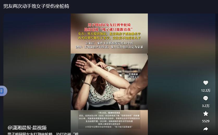 必须严惩!北京一女生和男友同居后,因争吵被男友打伤双手,但在男友的真诚道歉下,女子选择了原谅,可没想到,当女子提出想要做手术时,却遭到再次殴打,直接被打成只能坐轮椅,而男友边打还说:“残了就只能跟我”!网友:花轿直接变轮椅! “我想要的只是杨某能够负责我的手术费,让我可以去做手术,重新站起来,回归正常生活,同时,我也希望能让施暴者受到应有的惩罚!”这就是受害女子小玲(化名)现如今的全部诉求,这一点也不容易被实现的诉求也一字一句地向大家展示了,那几年间的悲惨遭遇。 根据相关报道,小玲是在朋友的聚会上,非常偶然的机会,认识了男子杨某(化名),原本以为第一次见面之后两人就不会有任何交集,但是杨某之后对女子展开了猛烈的追求,在杨某层出不穷的甜蜜攻势之下,小玲答应了,两人也顺利成为男女朋友,确立关系之后没多久两人便同居了。 同居的生活也非常幸福,小玲直言,那个时候,杨某每天对她都是嘘寒问暖的,还抢着做饭,还有一系列的家务活,她当时还觉得她能遇到这么有责任心、有耐心还贴心的男朋友真好。之后甚至直接带着男子搬离原本的出租屋,住进女子自己名下的房子,那是女子的父母给她准备的。 结果,住进房子没多久,两人便爆发了第一次争吵,那一次,小玲的双手受伤严重,就像骨折了一样,根本无法动弹,这导致小玲做很多事情都十分不方便,一度达到了生活无法自理的程度,于是小玲总是想要到医院进行相关治疗,但两人却总是在这件事情上产生冲突。 更可怕的是,杨某对小玲采集这件事还有那么几分兴奋,一边打小玲一边说:残了就只能跟我!两次被打之后,小玲就像要分手,但杨某却一反常态,开始催促小玲领证结婚,甚至向小玲求婚,还强制安排婚纱照,小玲觉得非常莫名其妙,后来才知道杨某图的是她名下的房产,要求小玲加上他儿子的名字,将来就是他儿子的。 也正是那一次,小玲才知道杨某有儿子,甚至朋友帮忙深入调查,还发现杨某是个身上有案底的人。小玲只觉得恐惧,和杨某在一起的这两年多时间里,她什么都没得到,反而现如今只能靠轮椅出行,双手无法正常活动、髋部损伤,每天都在忍受疼痛。 更让她感到痛苦的是,她从去年就已经上诉故意伤害立案,但却一直停留在伤情鉴定这一步上,她不知道,所以在记者的镜头前她说出了开头的那一段话,她的全部诉求,回归正常生活,她原本是由正常生活的,甚至会过的更好,有好的工作,家里条件也不错,北京独生女,只是遇人不淑。 此事曝光后,网友直言:世界上没有‘家暴’这个词,这叫“故意伤人”和“蓄意杀人”!必须严惩!还有网友表示:谈恋爱之前,就应该先查清楚对方的背景!这也是给现在所有的人提个醒,千万不要恋爱脑,不管对方对你多好,都要留个心眼!谨慎一些没坏处! 对此,大家怎么看? (参考信源:潇湘晨报)