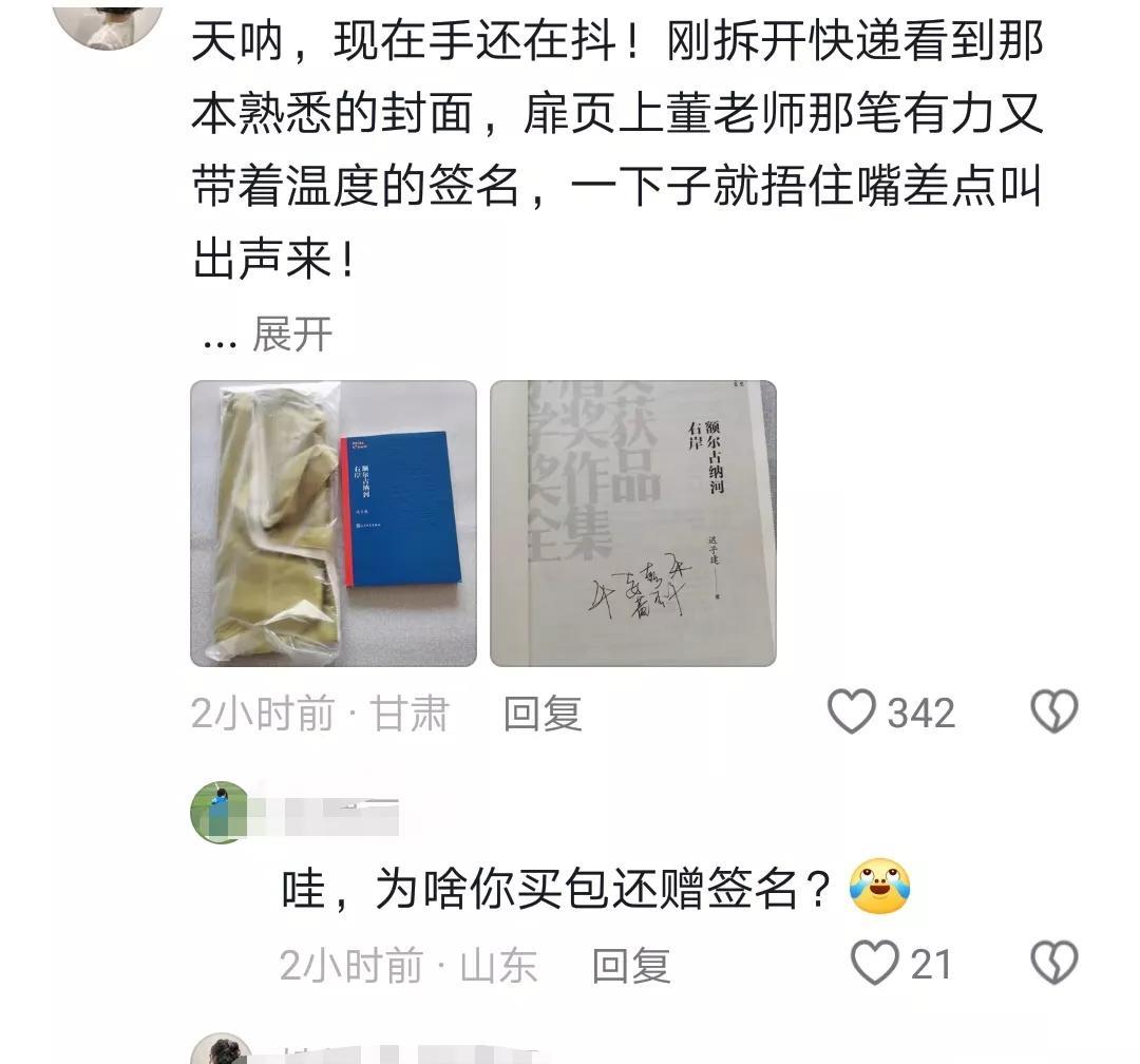看得出来这位朋友相当的激动,收到董宇辉礼物的那一刻,手还在抖,忍不住第一时间在评论区分享了好消息。 这位朋友可能也没想到,盼盼在“游知万物”提的问题,她积极的在评论区回复,没想到真被小编看到抽中了。 兰知春序专门寄来了两份惊喜礼物,一份是董宇辉亲笔签名书,一份是与辉同行的平安喜乐包。 不怪她激动,这谁看了不羡慕,盼盼说的惊喜礼物原来这么用心和特别。 她说,这种珍视又急切的心情,太奇妙了,书本看了又看,扉页上的签名,潇洒而又有温度。 有朋友说,真有这么好,我不信,除非让我也中一次。 #董宇辉# #新锐创作者成长计划#