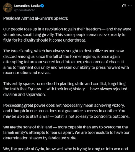 说白了,叙利亚现在就是个弱鸡,内忧外患。朱大帅的讲话,就是想稳住国内,吓唬一下以色列,让大家各退一步。但能不能摆平这事,还得看他接下来的操作。