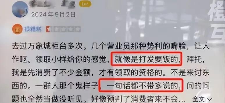 就是卖奢侈品货的而已,以为他们就是奢饰品。郭老师说过,装青花瓷的盒子与青花瓷一起售卖,盒子就以为自己是青花瓷了。 自以为为店里出头,搭上了后半辈子,甚至影响下一代,图啥。 那些奢侈品对我来说就是垃圾而已,看都不会多看一眼。这就是奢饰品,素质底下,居然还有人用。 这么嚣张跋扈的柜员,叫她姐都是对这个词的侮辱!什么品牌培养什么员工,就这么简单。 自己也就是卖货的而已,搞的自己是老板一样。卖不起别卖,这不让那不行的,别开店得了。 有问题解决问题啊,当着孩子的面,三个人打一个,还有理了? 合肥的柜姐怎么了,要么喊顾客爸爸上赶着送给顾客睡,要么像暴徒一样殴打女顾客,她们还真把自己当回事了。