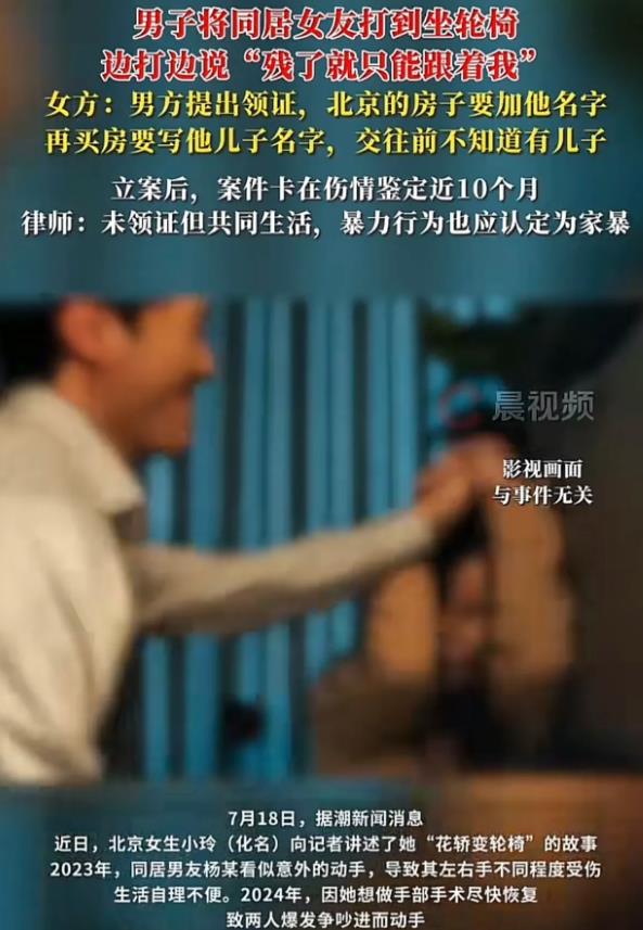 北京,女孩小玲和男友杨某在朋友聚会上相识后同居,起初日子甜蜜。2023年7月,杨某首次打伤小玲双手,道歉后小玲原谅。2024年4月,杨某提结婚还要求房本加名、以后买房写他儿子名,小玲想分手遭纠缠。7月小玲想手术,杨某再次施暴致其坐轮椅。9月小玲报警,10个月后案件卡在伤情鉴定,小玲没钱手术。