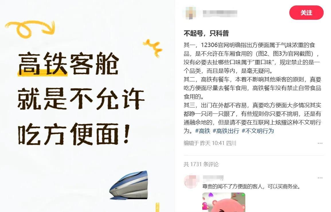高铁上不允许吃泡面,这事已经实锤了,康师傅和今麦郎前途堪忧啊!12306明确指出