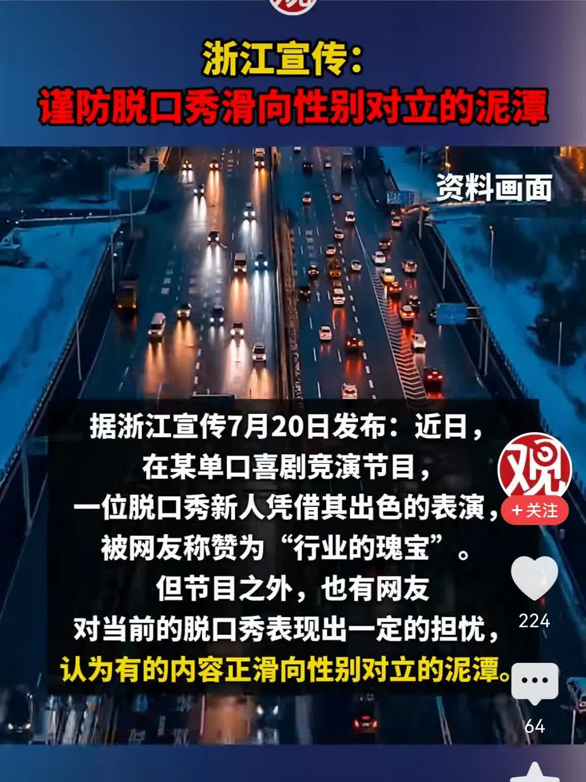 终于有媒体站出来, 直击现在脱口秀问题的本质: 脱口秀反复拿“男女对立”做文章!! 文章直接指出现在某些脱口秀,已经逐渐脱离了幽默的本质。 她们现在正将脱口秀滑向男女对抗的泥潭。 已经从过去对男性幽默的调侃“普信男”,慢慢变成了赤裸裸的谩骂,甚至直接把老公说成了“柯基狗”。 需要特别注意的是,任其这样失控的发展下去,永远不会只有一方是受害者。 有网友评价:媒体的醒悟,晚了点。