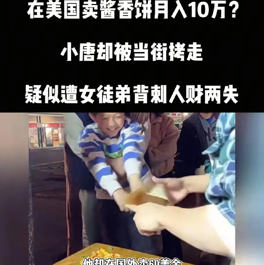 啥?卖酱香饼的大叔被抓了,现在又放出来了?听说是因为跟一个女的闹掰了,这女的可不简单,有人说她想独吞大叔的生意,一斤饼卖60美元,这钱也太好赚了吧!这女的之前在日本就搞出过人命,现在又来美国搞事情,简直就是个狠角色!