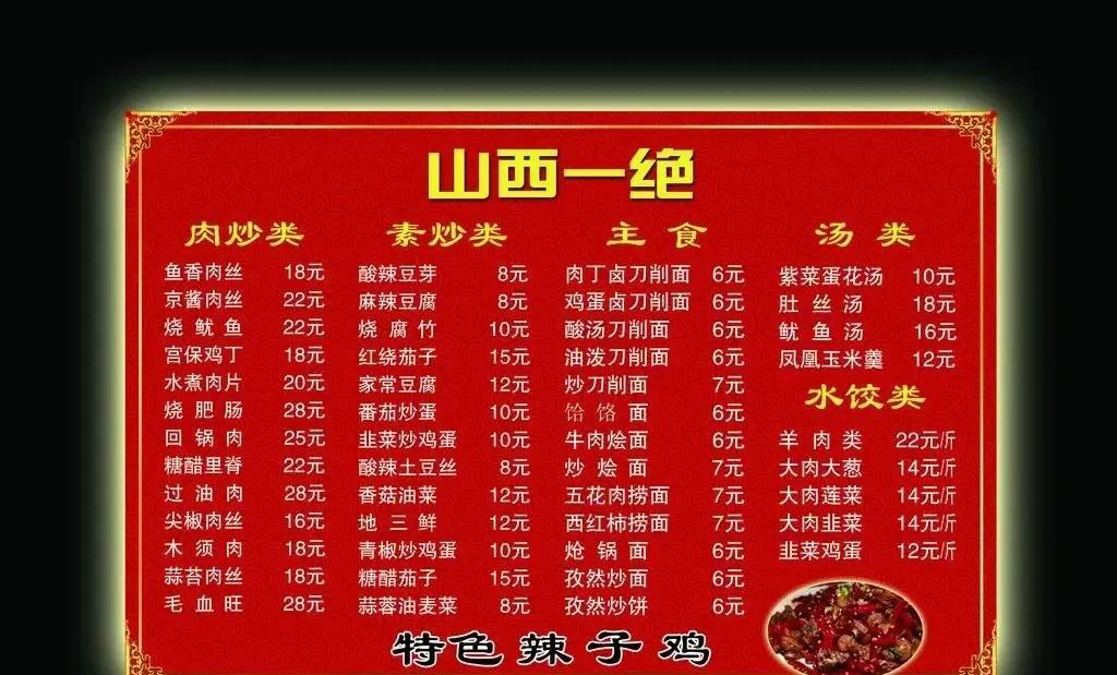 你这个山西菜谱是村里的价格吧?搞笑有点