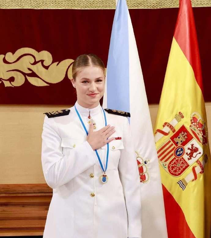 西班牙国王为她表彰,祝贺秀外慧中的女儿, 莱后和妹妹索菲亚陪同出席,热烈互拥[送心]