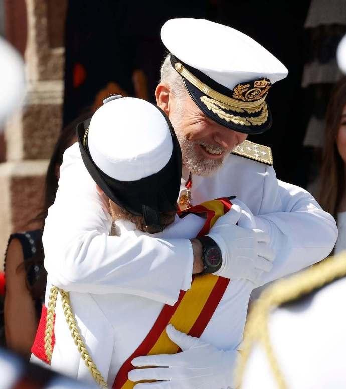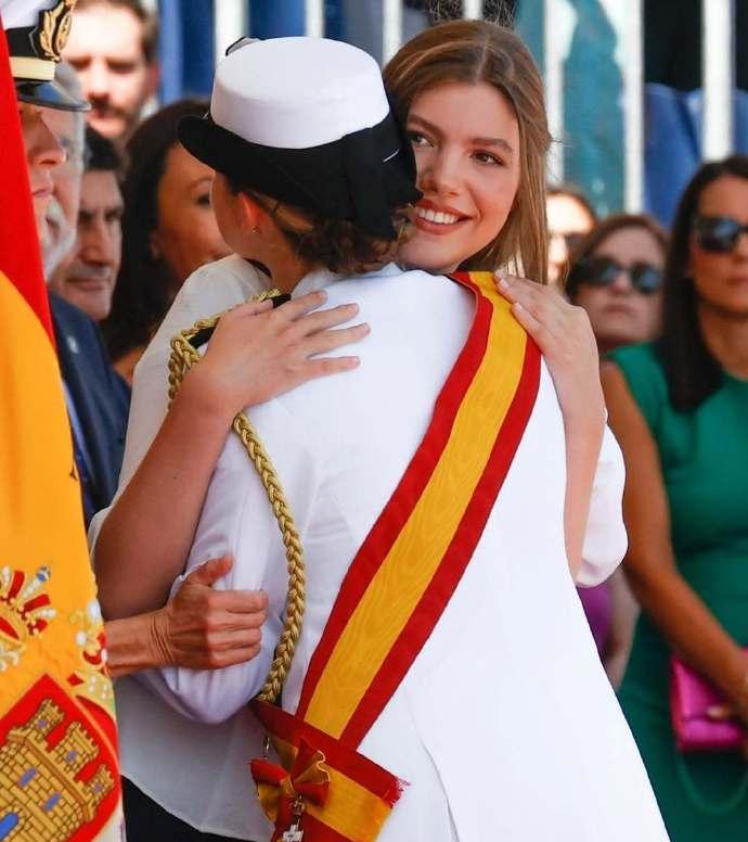 西班牙国王为她表彰,祝贺秀外慧中的女儿, 莱后和妹妹索菲亚陪同出席,热烈互拥[送