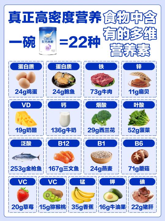 ✅还有6.0mg/100g的二价铁协同VC一起加速促进铁吸收,更有DHA、钙、VD、VA等22种多维营养素共同助力,宝宝营养密度直接拉满,再也不怕担心宝宝营养跟不上啦~