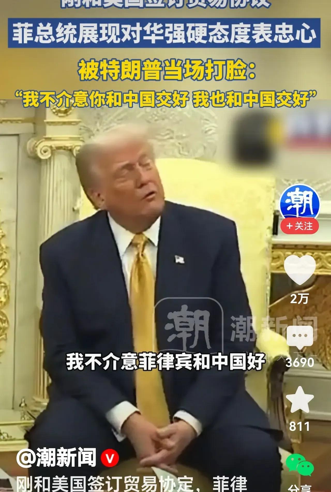 菲律宾这下尴尬了。 7月22日,菲律宾总统马科斯在白宫与美国总统特朗普会谈时,试