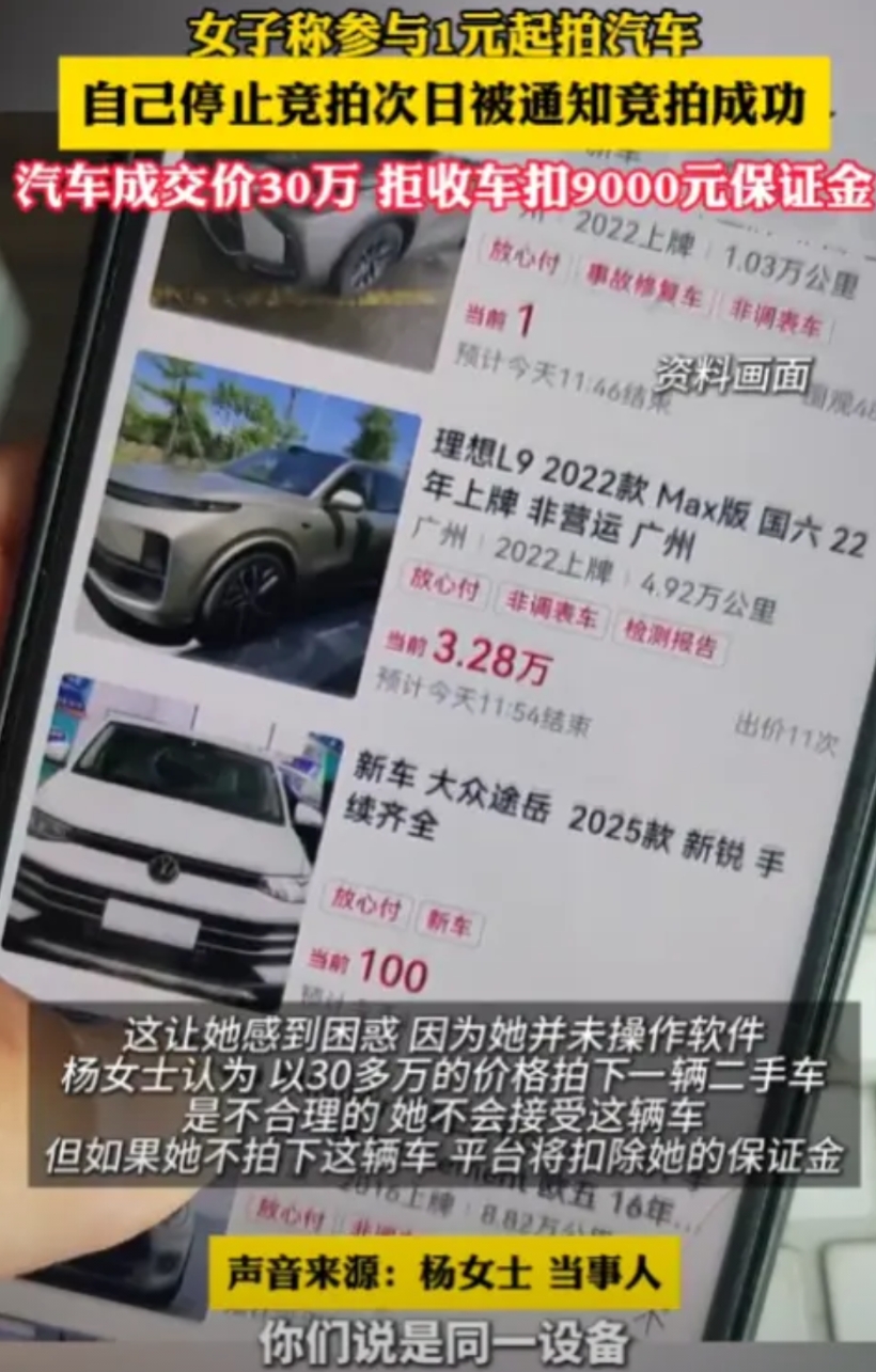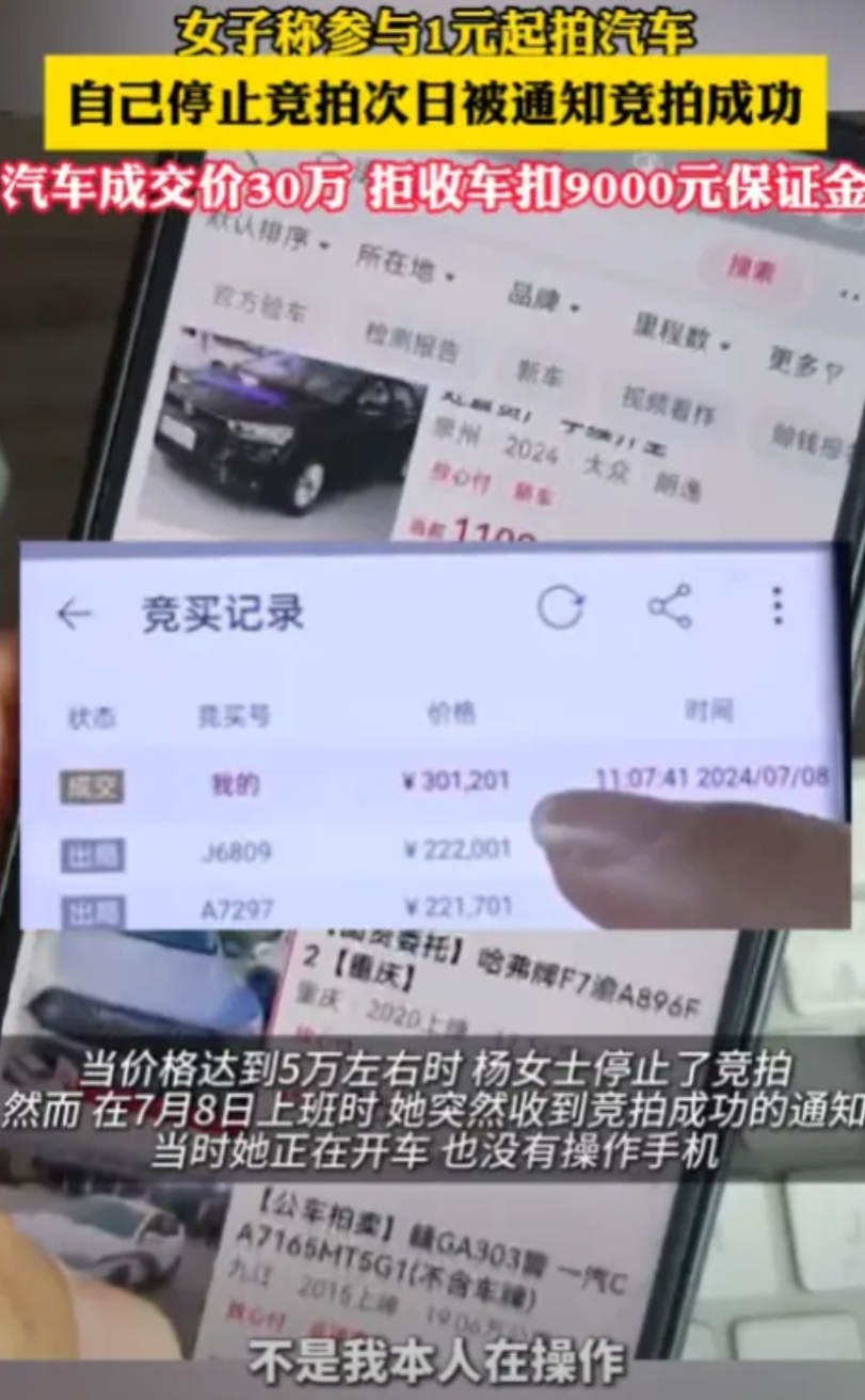“贪小便宜吃大亏!”女子在某拍卖平台上看到一辆车标着“一元起拍”,觉得挺新鲜,就点进去瞧瞧,不料第二天竟收到竞拍成功的短信,可成交价却是30万元!疑惑的女子向平台反映:后面几次的钱不是本人出的!可没想到商家的回答让人大跌眼界! 刚开始价格确实很低,几百块、几千块,杨女士也跟着出了几次价,但很快价格就开始飙升,一万、两万、三万……眼看着数字越来越大,杨女士心里开始打鼓了。 等价格涨到五万的时候,杨女士觉得差不多了,这已经接近她能接受的上限,再加下去,万一真拍到手里,那可就亏大了,于是她果断退出竞拍,关掉软件,甚至把手机都关了。 本以为这事儿就这么过去了,谁知道第二天一早,手机刚开机就收到一条短信:恭喜您竞拍成功,成交价30万元! 杨女士当时就懵了,从五万到三十万,这中间发生了什么?她明明记得自己最后一次出价是五万,然后就关机睡觉了啊。 赶紧登录平台查看竞拍记录,这一看更让人摸不着头脑,记录显示,在她关机之后,她的账号还在不停地加价,而且每次都是几万几万地往上跳,一直加到了三十万才停。 这就奇怪了,人都关机了,账号怎么还能自己加价呢?杨女士第一反应是账号被盗了,或者是平台系统出了问题。 为了证明不是自己操作的,杨女士翻出了家里的监控录像,录像清楚地显示,在账号疯狂加价的那个时间段,她正在开车回家,根本没碰过手机。 她还查看了手机的后台管理,发现竞拍软件在她关机后就没有被打开过,这些证据看起来已经很充分了,总不能是手机自己长了手在那儿点吧? 带着这些证据,杨女士联系了平台客服,希望能取消这笔交易,毕竟这明显不是她本人的操作,平台应该能理解吧。 可平台的回复让人大跌眼镜,他们坚持说“没有证据证明不是杨女士本人操作”,拒绝承认系统可能存在问题,更过分的是,他们还要求杨女士必须支付剩余的尾款,否则九千元的保证金一分都不退。 这下杨女士彻底急了,三十万可不是小数目,对普通家庭来说,这简直是天文数字,而且这笔钱明明不是她花的,凭什么要她来承担? 说实话,现在网上的拍卖平台确实鱼龙混杂。“一元起拍”听起来很诱人,但里面的水深着呢,有些平台为了赚取高额佣金,会想方设法抬高成交价。 比如设置自动加价功能,一旦你参与竞拍,系统就会自动帮你加价,或者雇佣“托儿”恶意哄抬价格,让真正的买家不得不出高价。 还有一种情况是账号安全问题,如果密码设置太简单,或者在不安全的网络环境下登录,账号就可能被盗用,黑客拿到账号后,专门用来恶意竞拍,坑害账号主人。 不管真相如何,这件事都给我们敲响了警钟,参与网络竞拍,一定要选择正规可靠的平台,那些来路不明的小平台,最好别碰。 参与竞拍前,要仔细阅读平台规则,特别是关于保证金、违约责任这些条款,有些平台的霸王条款,专门挖坑给用户跳。设置竞拍上限也很重要,不要被现场气氛带着走,超过心理价位就果断放弃,记住,便宜没好货,天上不会掉馅饼。 如果真的遇到类似杨女士这种情况,第一时间保存好证据,包括竞拍记录、支付记录、聊天记录等等,必要时可以报警或者找消费者协会维权。 网络时代给我们带来了便利,但也带来了风险,我们既要享受科技带来的红利,也要提高警惕,保护好自己的合法权益。 你觉得杨女士这事儿,到底是平台的问题还是她自己的问题?如果是你遇到这种情况,会怎么处理? 信息来源:巨流新闻--《女了称参与1元起拍汽车,自己停止竞拍,次日被通知竞拍成功。》