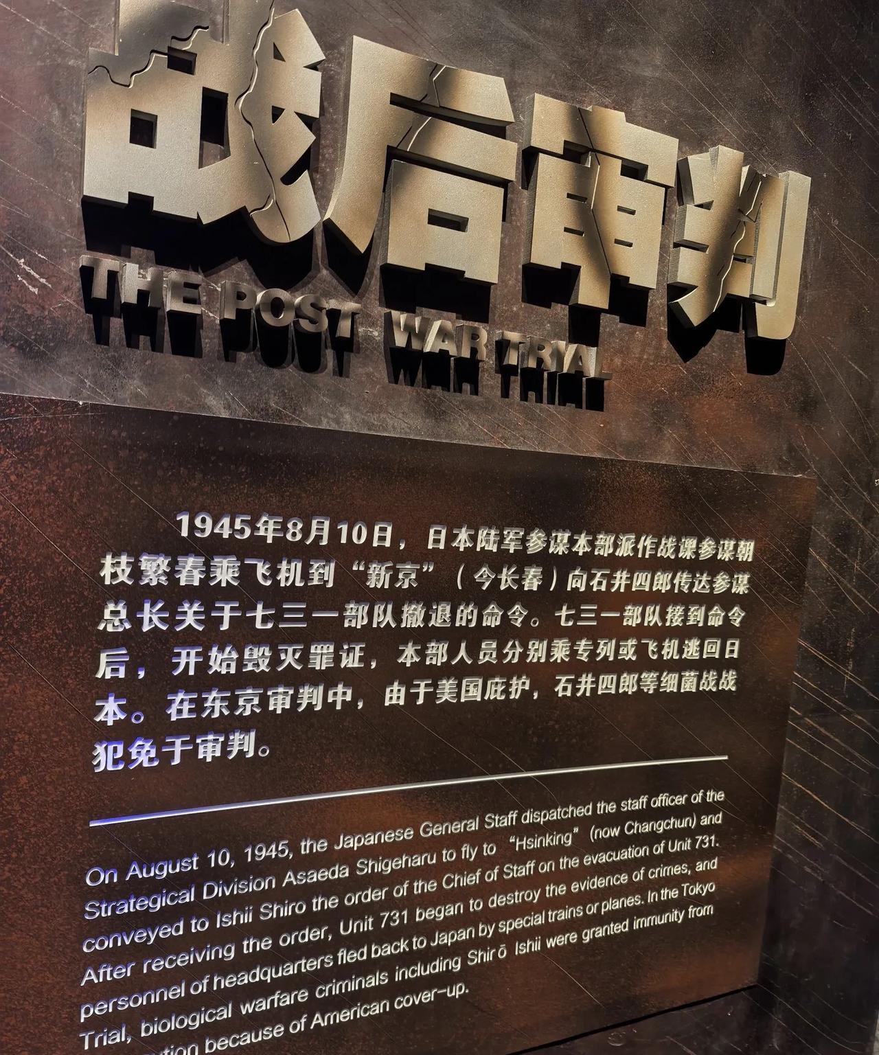哈尔滨的最后一站去了七三一罪证陈列馆。 踏着沉重的脚,看着玻璃柜里生锈的手术刀,在冷光灯下泛着寒光,展板上的黑白照片里,那些被捆绑在铁架上的躯体像风干的腊肉,我们的同胞,我们的先辈,就这样,被人当做“马路大”(剥了皮的树木),我无数次想,他们生前最后看到的天空该是多么苍白。 转角看到七三一部队军官们的菜谱,顿顿有汤,餐餐有肉,生而为人,不知道他们怎么吃得下,屏幕上播放着当年某些日军参与者的回忆录,不禁感叹,不都说因果报应吗,做下这么多惨无人道的事,他们为什么还能如此长寿。 从陈列馆出来,要经过一段很长很长的走廊,才能到达室外的遗址,从长廊的黑暗中走到光明的室外,头顶是哈尔滨7月的晴天艳阳,而我突然泪流满面,难以自制。 "别回头,向前走,出口有光,有人间烟火,有国泰民安。别忘记,来时路,有民族苦难,有国仇家恨。"这段话刻在出口的墙上,也刻在每一个中国人的心里。 (有很多照片没有拍摄)