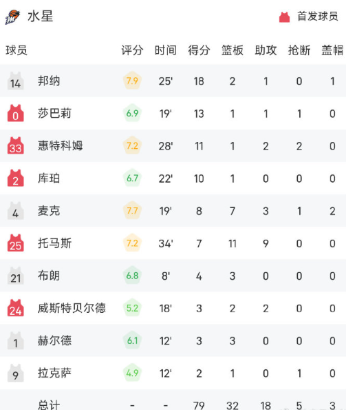 25赛季WNBA常规赛,水星对阵梦想,双方全场战罢,水星79-90不敌梦想。格