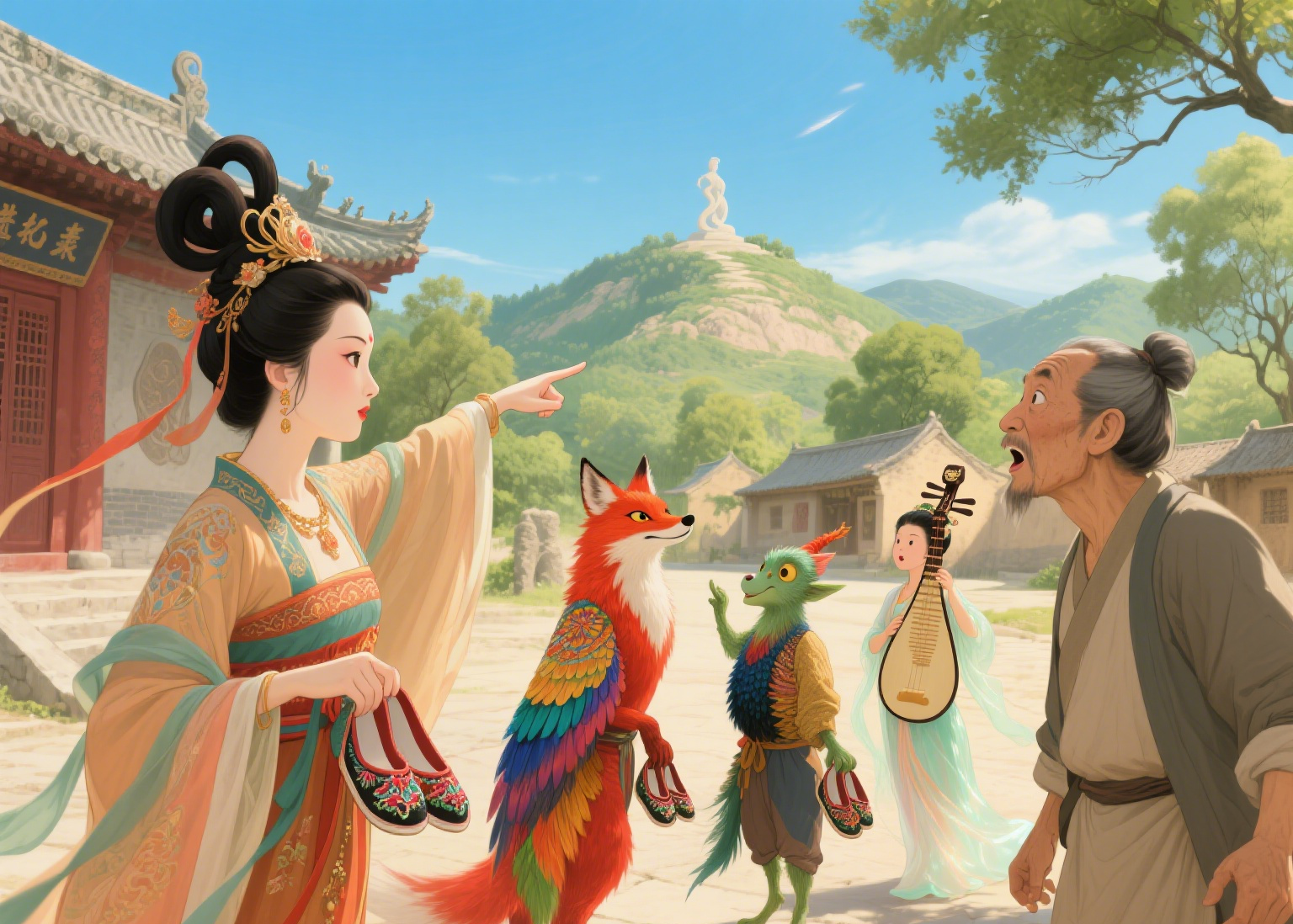 “女娲补天剩的七彩石里,怎会爬出三只穿人鞋的妖精?” 老猎人这话一出口,整个青丘山都炸了锅。 话说豫西青丘山脚下有个李家沟,沟里人世代供奉女娲庙。 这年七月十五,采药郎王二狗在轩辕坟旁撞见怪事,三双绣花鞋在坟头转圈儿,鞋里却空荡荡没人脚! “哎哟我的娘!”二狗连滚带爬回村,正撞见族长领着人祭女娲。 供桌上突然“咔嗒”三声,三块补天石裂了缝,钻出只火狐狸、花雉鸡和玉琵琶,个个脚上套着刚才坟头的绣鞋! 当夜村里首富张员外家摆寿宴,忽然堂屋飘来香风。 只见狐狸精扭着腰布菜:“奴家最懂红烧肉哩~” 雉鸡精翘着兰花指斟酒:“这杏花酿得配奴家的翎毛~” 琵琶精弹着曲儿冷笑:“弹首《寡妇哭坟》助兴可好?” 满座宾客吓得筷子都拿不稳。 第二天女娲庙的泥像突然活了! 娘娘甩着蛇尾拍案:“这三个孽障偷穿我补天时落的云霞鞋,专吸人间贪嗔痴!” 原来那双绣鞋是女娲用怨气化成的,谁穿上就会现原形。 三妖哭喊着抱大腿:“我们再不敢骗香火钱了!” 女娲让三妖把绣鞋埋回轩辕坟,自己却悄悄对村长说:“鞋底下压着商纣王的金叶子,挖出来修渠吧。” 后来渠道成那天,有人看见三只动物蹲在渠边: 狐狸帮老妪提水桶,雉鸡给秧苗捉虫,琵琶用弦音吓跑偷粮的麻雀。 这故事传开后,豫西人常念叨: 妖精不可怕,就怕妖精有文化。 贪心穿错鞋,善心才是宝。 如今青丘山一带,连三岁娃娃都知道见着漂亮绣鞋要先问一句:“您家娘娘同意穿了吗?” 亲爱的读者朋友,你们家乡也有这样的传说吗?