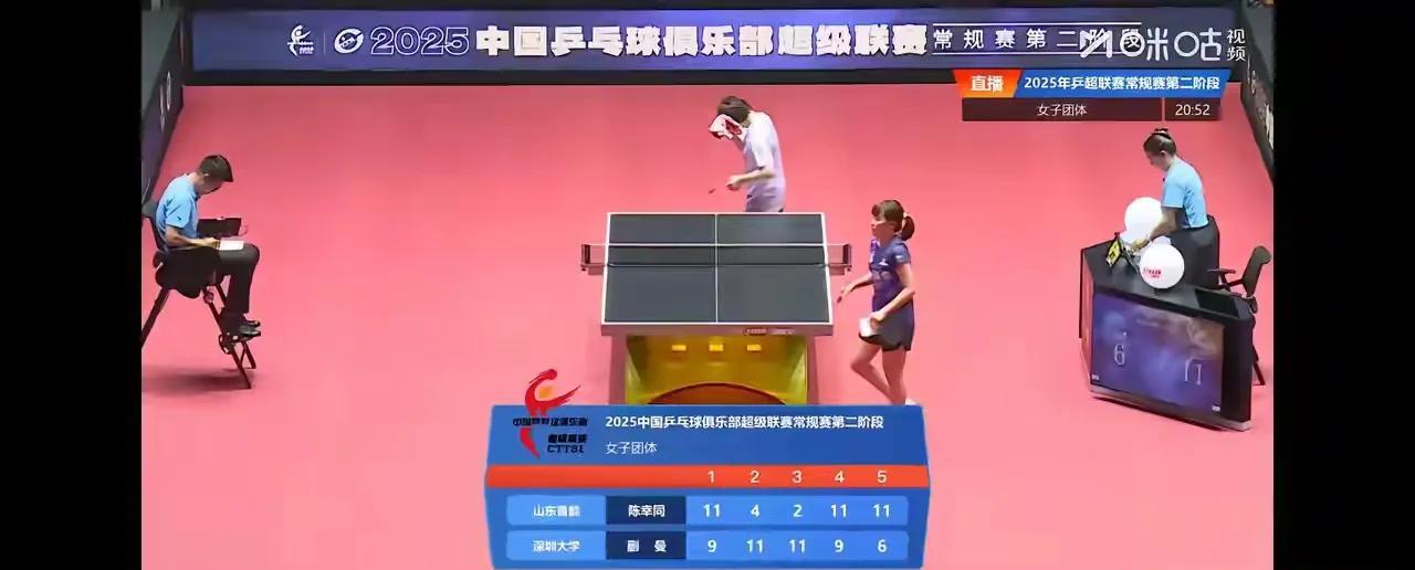 2025乒超第二阶段比赛:一场非常有意思的对决! 孙颖莎未参赛的深圳大学1:3山