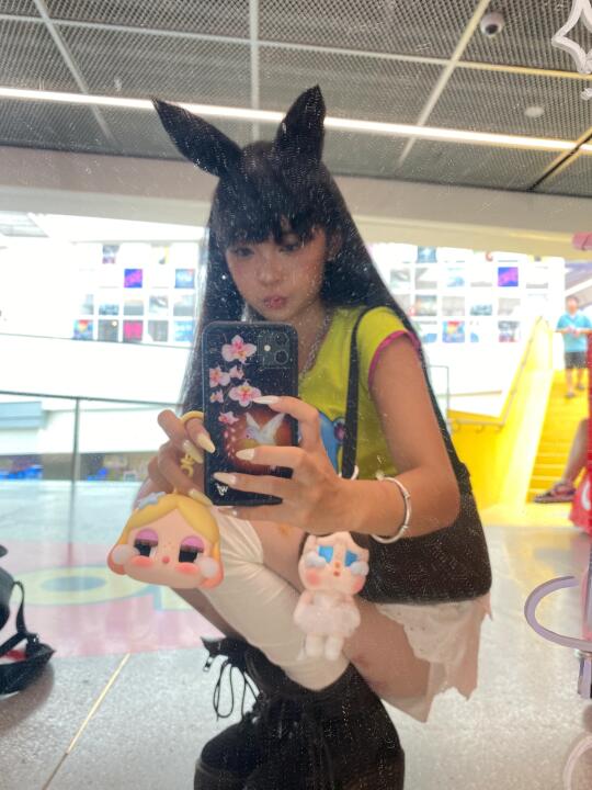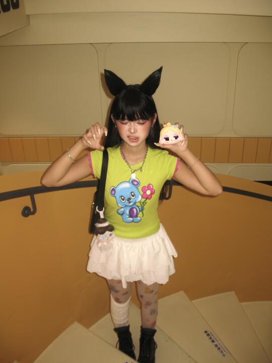谁还记得23年夏天的supershy~ 其实除了主打曲,mini2还有超级多好听的收录曲!其中我最喜欢的舞台就是《newjeans》的飞天小女警的打歌舞台! haerin的绿色套装+猫耳朵的造型特别眼前一亮!经典到连鞋子都有直拍hhhhh 今天跟朋友出门去逛线下周边店和爱豆体验馆,终于如愿以偿cos了猫猫的这套造型! 还带了新抢到的 CRYBABY新系列,满满当当的特别幸福嘻嘻