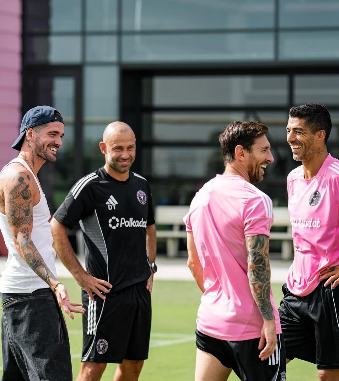 主教练是前队友马斯切拉诺,除了巴萨队友苏牙、布教授、阿尔巴,现在又来了德保镖,妥